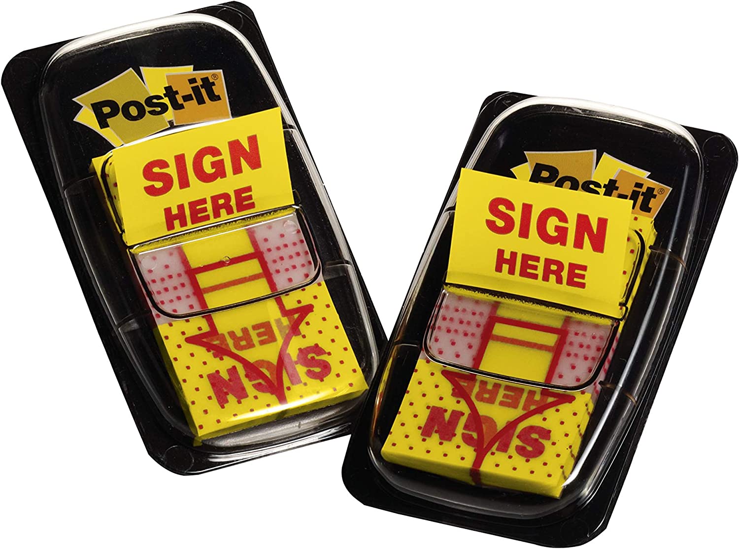 Post-it Message Flags, "Sign Here", 50/Dispenser, 2 Dispensers/Pack, 1 in Wide, Yellow (680-SH2)