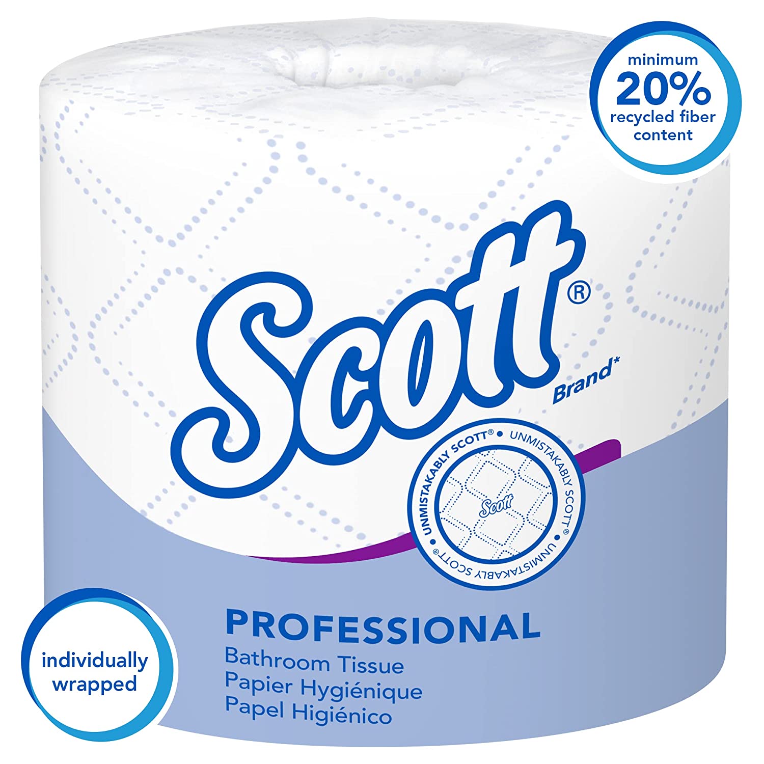 550 Sheets/Roll, 80 Scott Professional Standard Roll Toilet Paper Rolls/Case; 44,000 Sheets/Case; 2-Ply; White; Individually wrapped rolls; with Elevated Design