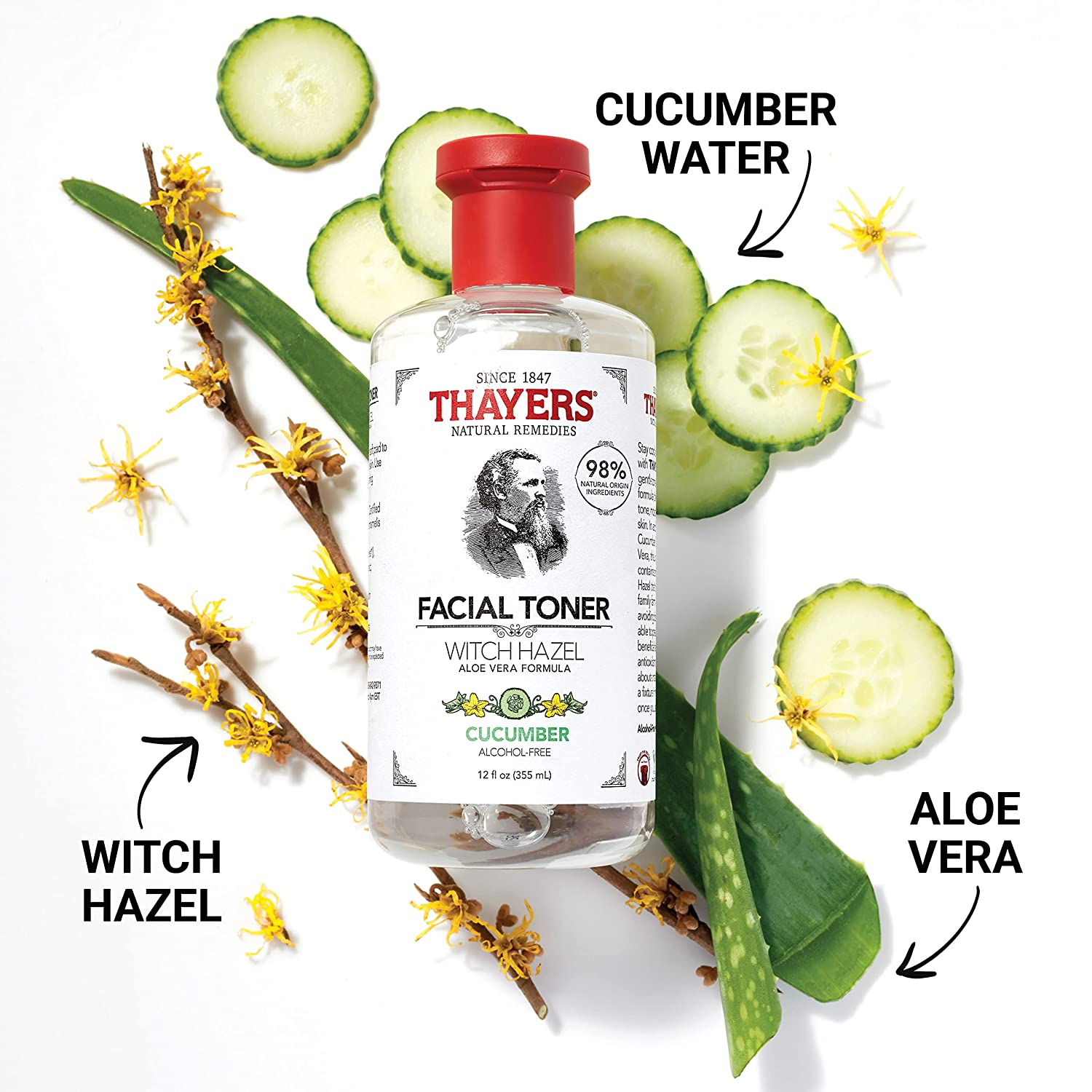 98 Percent Natural Origin Ingredients: Made with certified organic Witch Hazel grown and harvested exclusively for Thayers on a family farm in Connecticut, and certified organic Aloe Vera