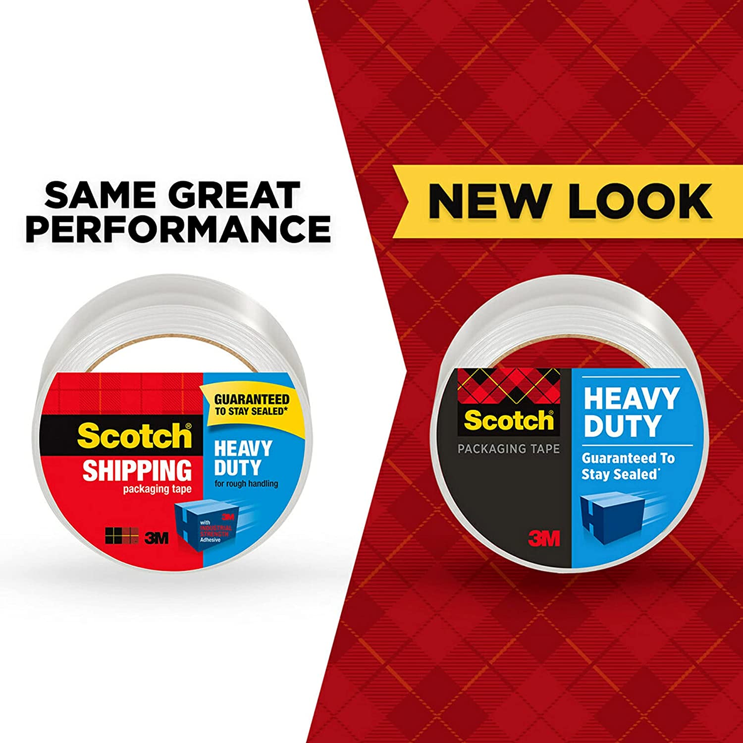 Scotch Heavy Duty Packaging Tape, 1.88" x 54.6 yd, Designed for Packing, Shipping and Mailing, Guaranteed to Stay Sealed, 3" Core, Clear, 18 Rolls (3850-18CP)