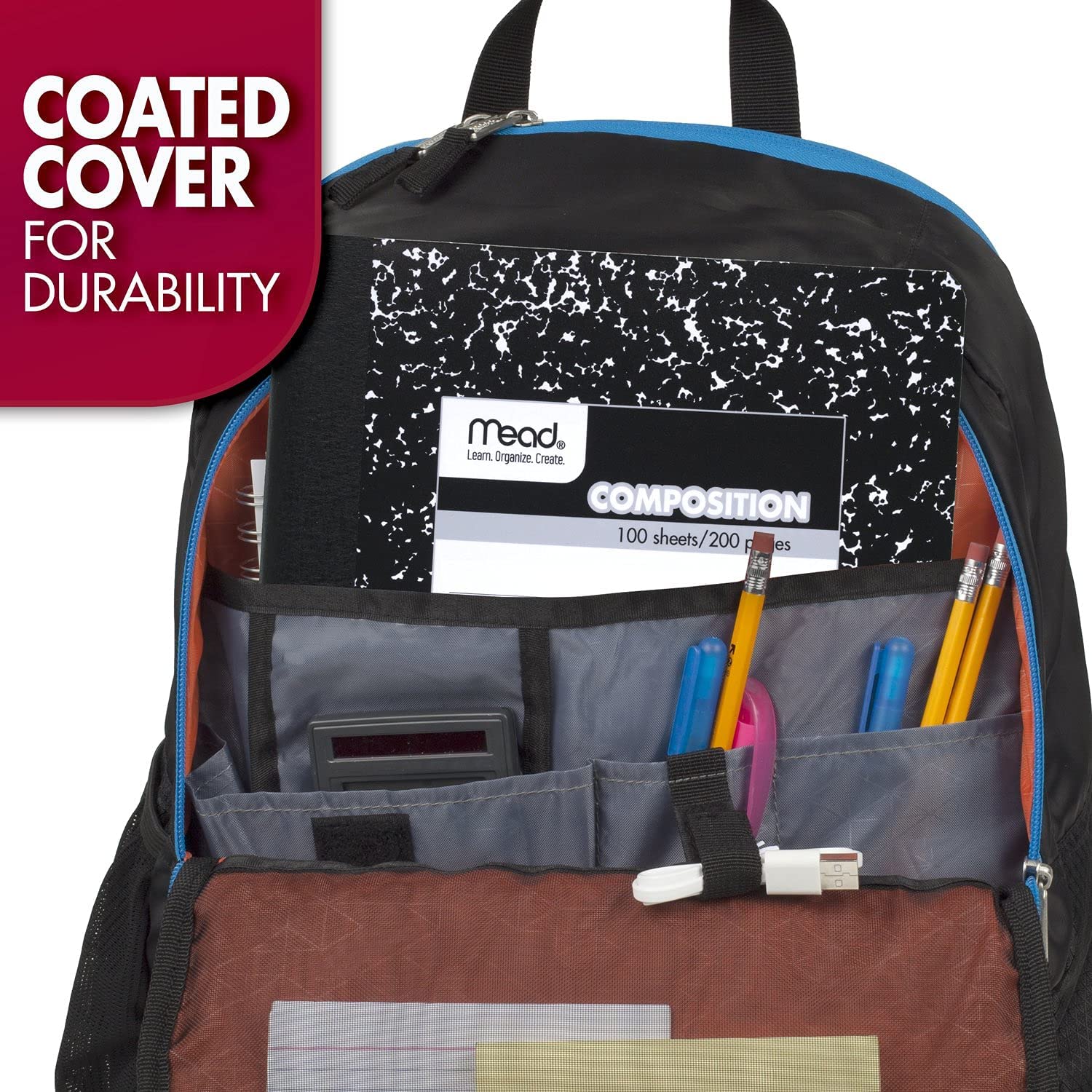 This Mead Composition Book is the classic choice for journaling and lab notes. Sheets measure 9 3/4" x 7 1/2". With 100 double-sided, wide ruled sheets, you’ll have plenty of space to take notes, journal, draw and more. Wide ruling is ideal for the younger student who needs more space between lines. Smooth binding keeps pages securely in place and won’t snag on your clothing or backpack. Black marble cover that includes a class schedule, multiplication tables, conversion tables and grammar rules. Sewn binding is smooth and keeps pages securely in place. Lays flat on any surface. Pack includes 12 composition books.
