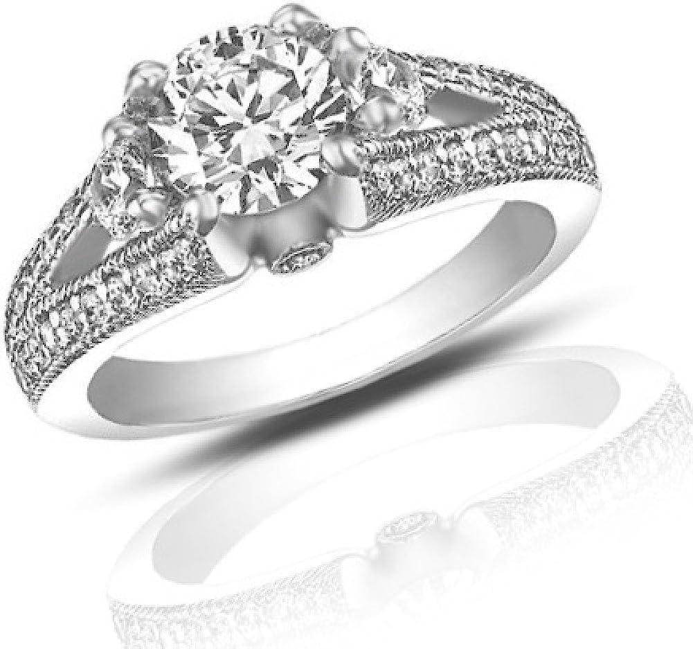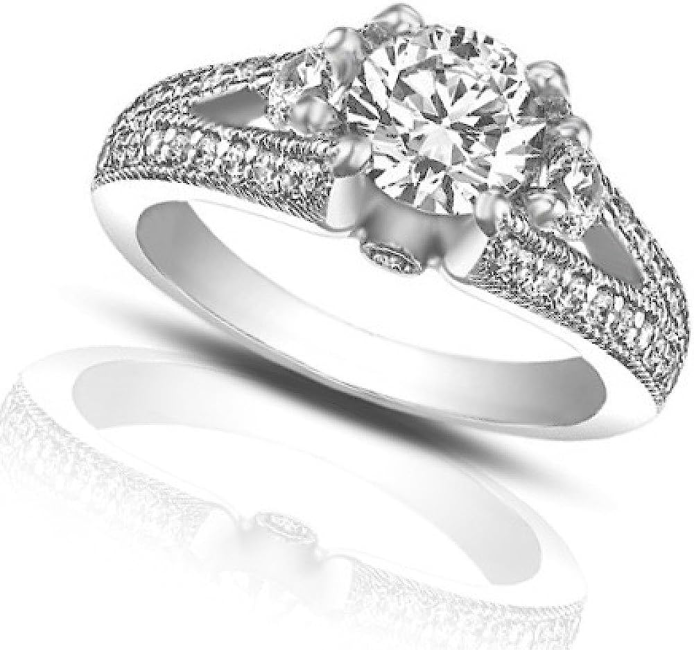 Madina Jewelry 1.49 ct Vintage Style Round Cut Diamond Engagement Ring in 18 kt White Gold