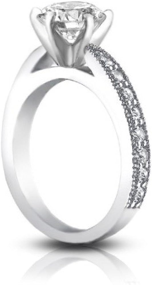 Madina Jewelry 1.40 ct Round Cut Diamond Engagement Ring Whit Millgrain on The Shank in 18 kt White Gold