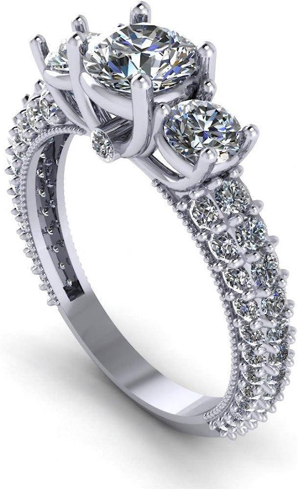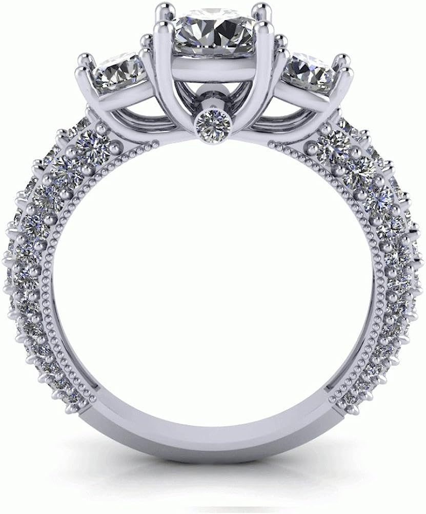 Madina Jewelry 2.60 ct Ladies Round Cut Diamond Engagement Ring with Accented Diamonds in 14 kt White Gold
