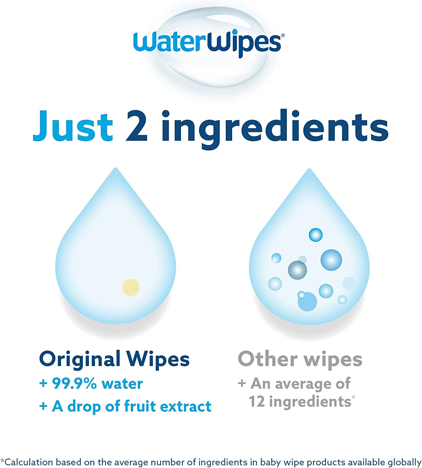 PACKAGING MAY VARY: Every package of WaterWipes Original Wipes still contains the same pure and trusted water-based wipes.