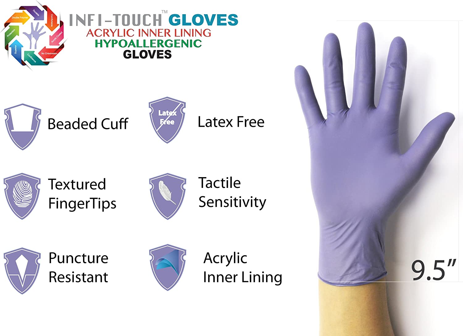 Infi-Touch Disposable Gloves , Steel Blue Heavy Duty Nitrile Gloves, 9.5" Length, Powder Free, 6 Mil Thickness , X-Large , Pack of 100