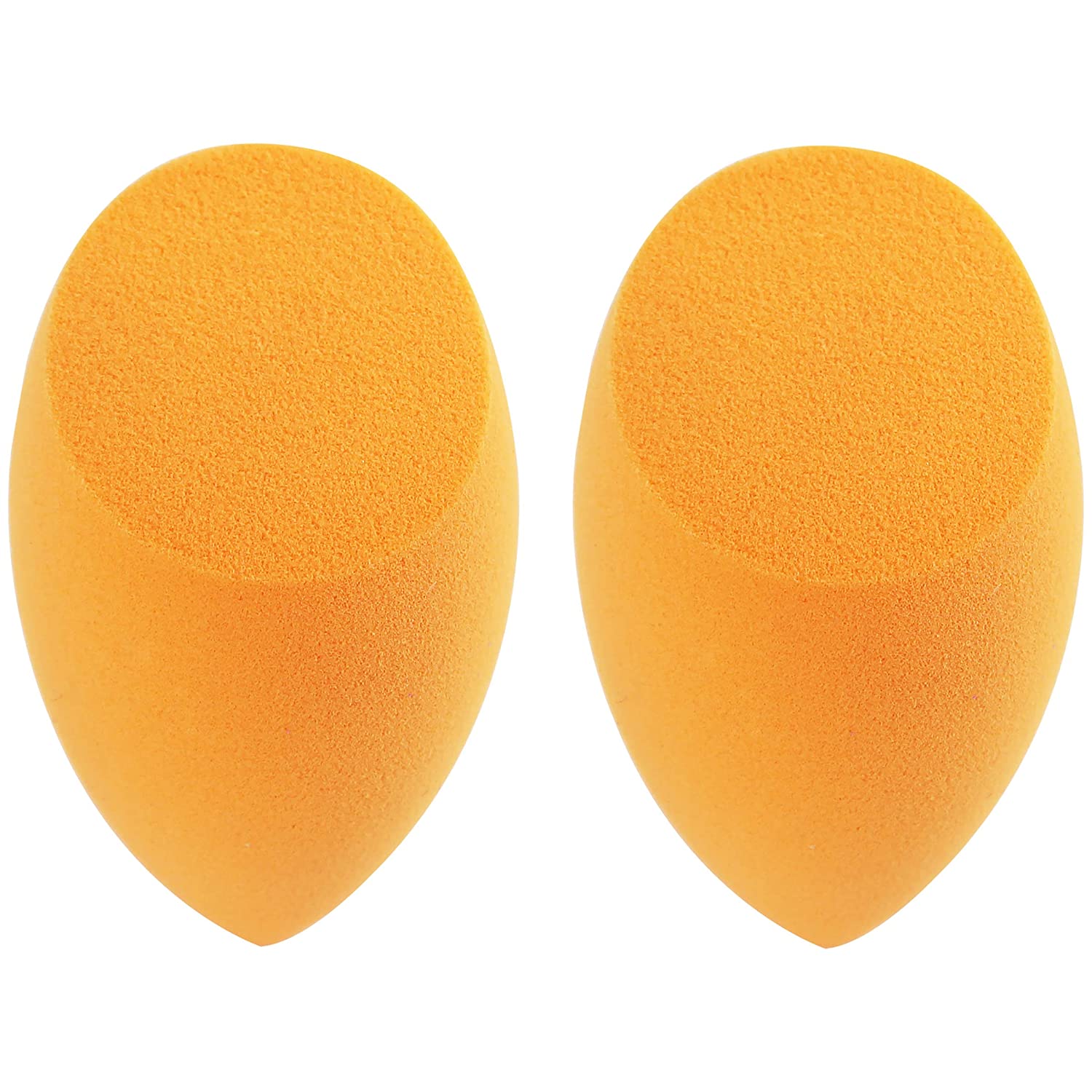 Real Techniques Miracle Complexion Sponge Duo, Makeup Blending Sponge, For Foundation, Offers Light To Medium Coverage, Natural, Dewy Makeup, Orange Sponge, Latex-Free Foam, 2 Count