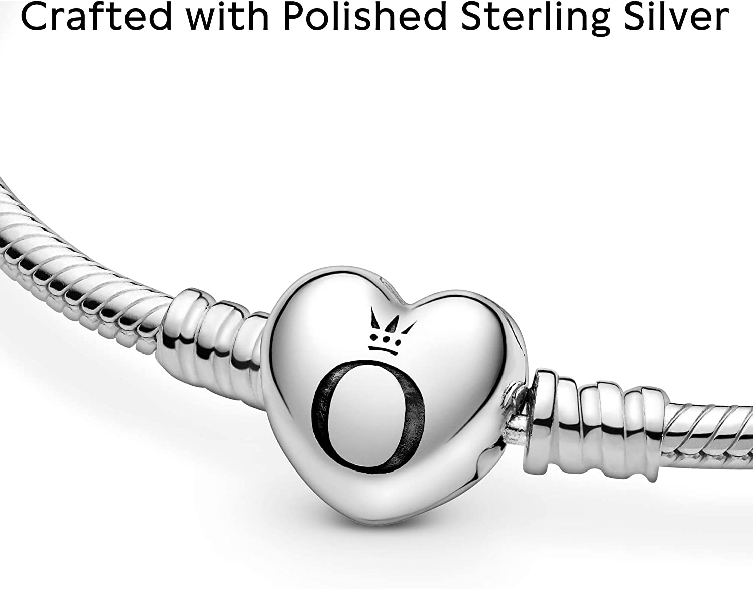 Set your heart a-flutter with this romantic version of Pandora's bestselling charm bracelet. Hand-finished with a heart-shaped clasp, this snake chain bracelet looks stunning on its own but even better adorned with your favorite Pandora charms and clips. Layer it with contrasting Pandora chain bracelets for a chic, multi-layered look.