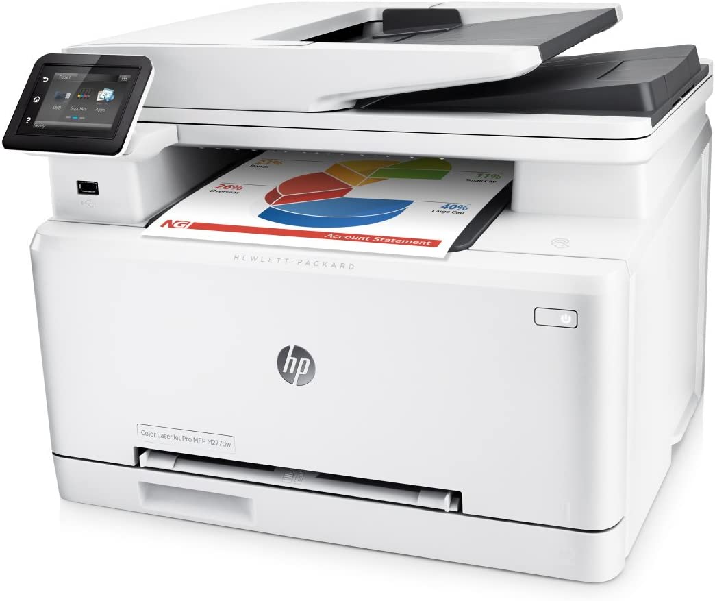 HP Color LaserJet Pro M277dw All-in-One Laser Printer - Black and Color: 19PPM / Print, Scan, Copy Fax / Print Resolution: 600 x 600 dpi / Optical Scan Resolution: 1200 x 1200 dpi / Automatic Duplex; 3" LCD Touchscreen / 150-Sheet Input Tray / 50-Sheet ADF / USB 2.0, Ethernet, and Wi-Fi with NFC - 90 Day Warranty - Does Not Come With Toner