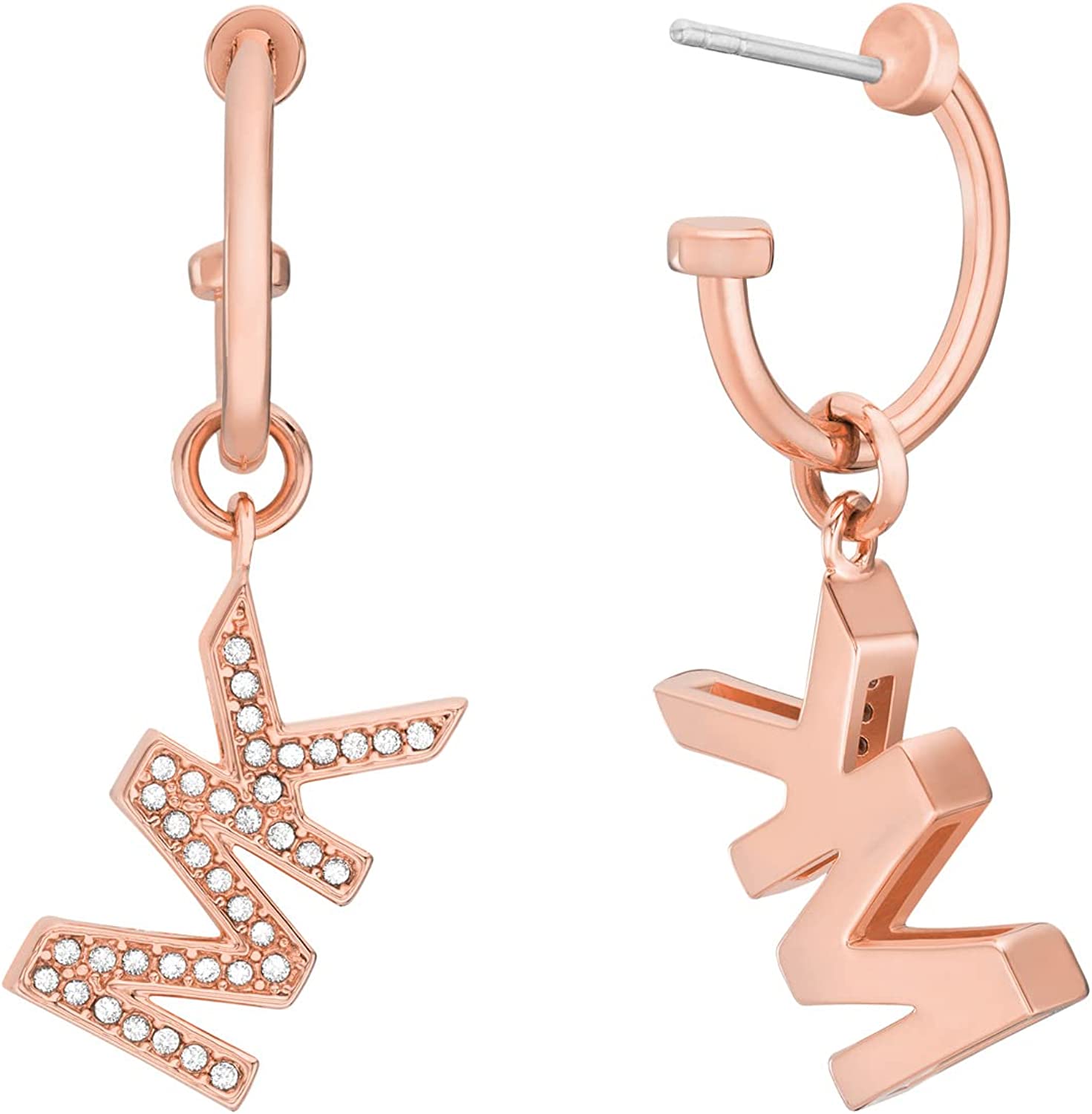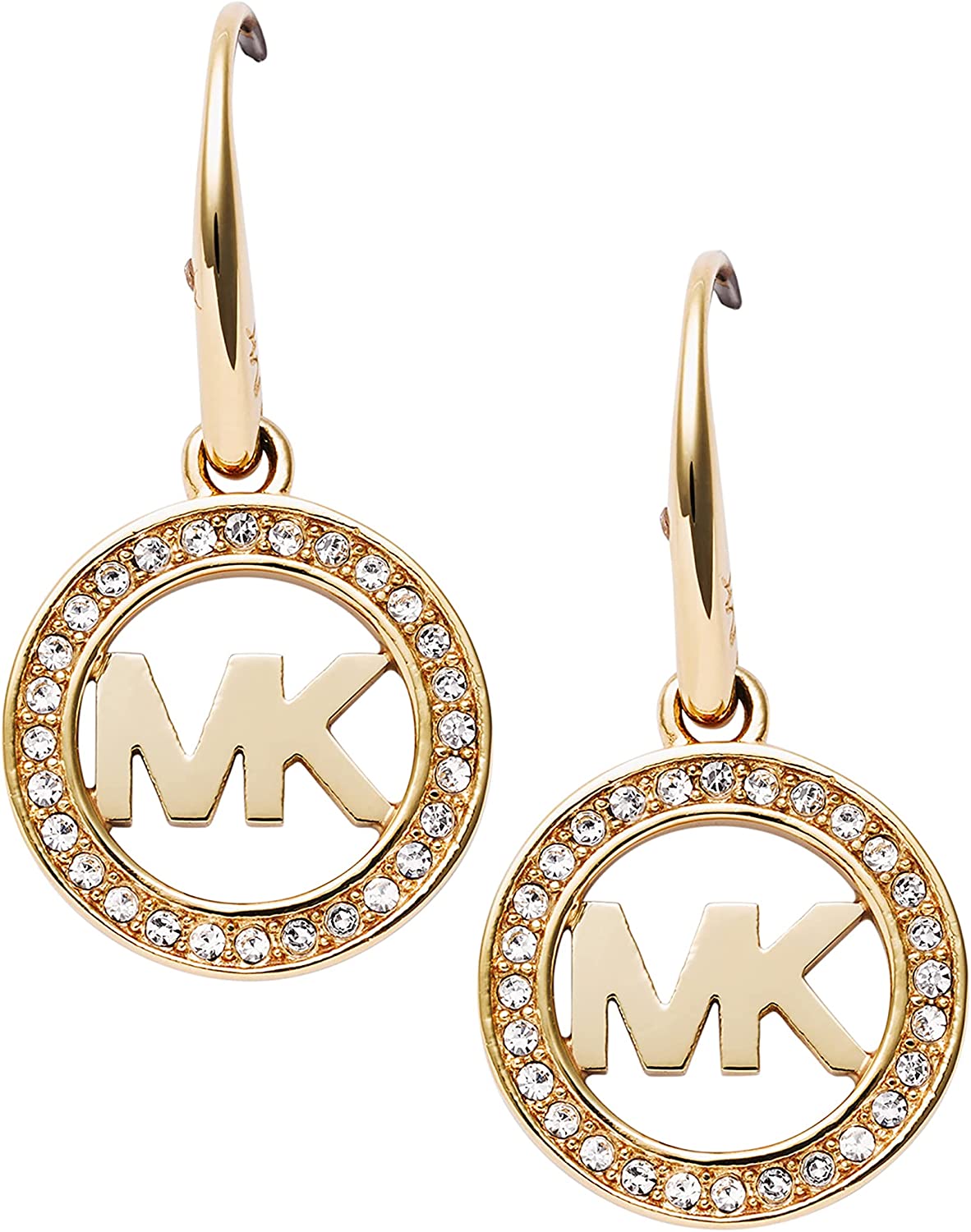 These stainless steel drop earrings feature the classic Michael Kors logo surrounded by sparkling pave crystals.