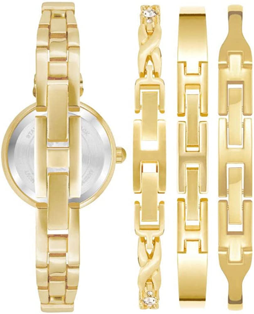 Anne Klein Women's Premium Crystal Accented Bangle Watch and Bracelet Set, AK/2238