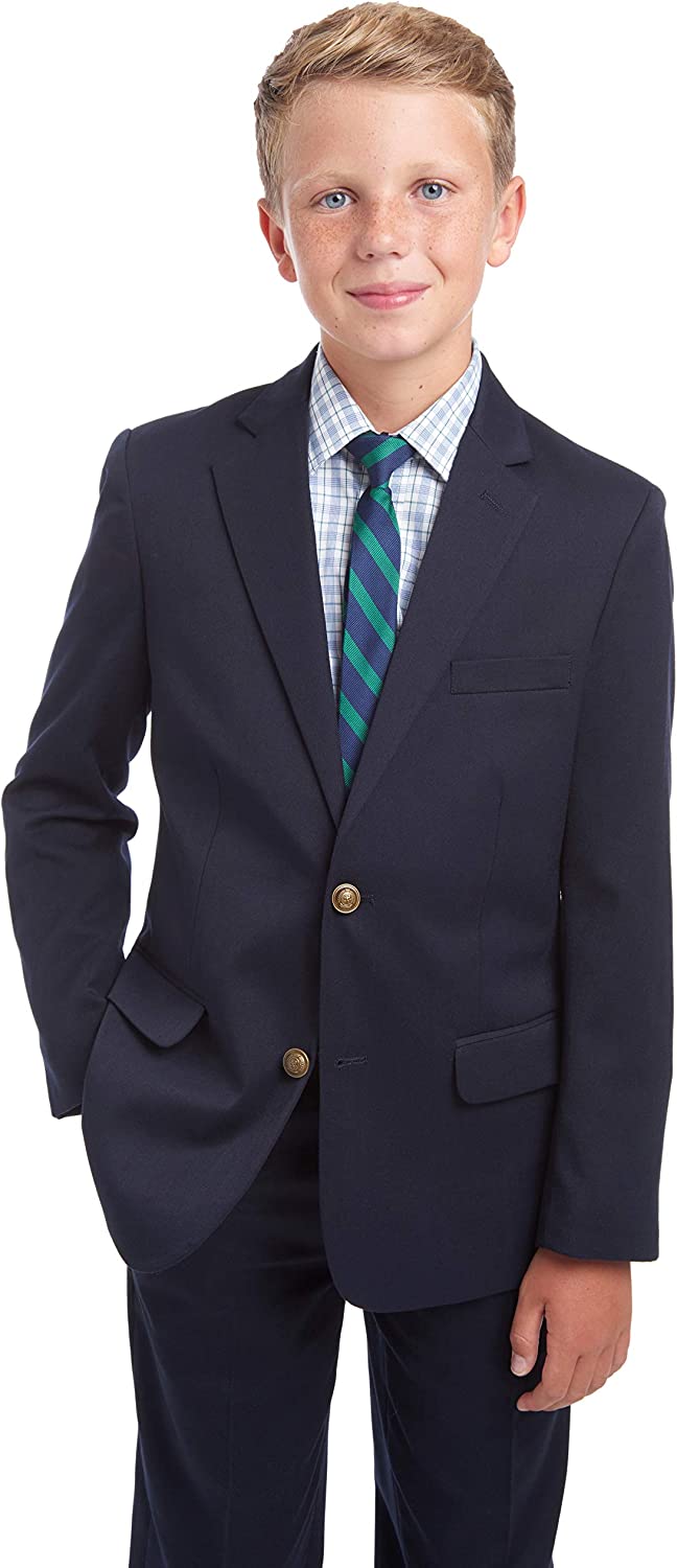 - A CLASSIC STAPLE: Our Alexander Blazer is the perfect addition to formalize and dress up any outfit. Single-breasted with stripe lining and featuring a welted chest pocket with a pocket square, front-flap pockets and a decorative button closure, this boys blazer combines both style and utility.