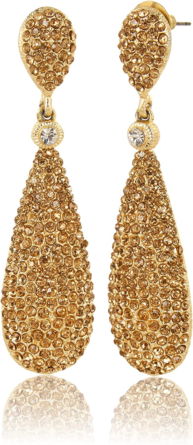 - DESIGN-These elegant Golden Gold Drop Earrings with champagne stones are a classic and will never go out of style.They are the best Chandelier Earrings in gold and can be worn with western as well as traditional outfits.The 180degree rounded shape of the earring adds to the glamour of the diamonds and its resemblance to real jewellery.Women chandelier drop earrings in womens costume jewelry.
