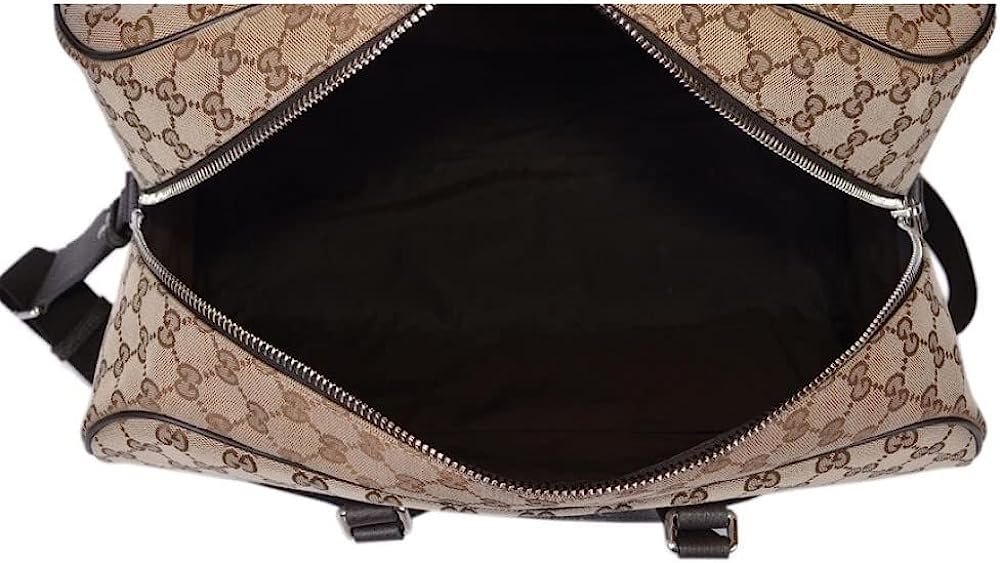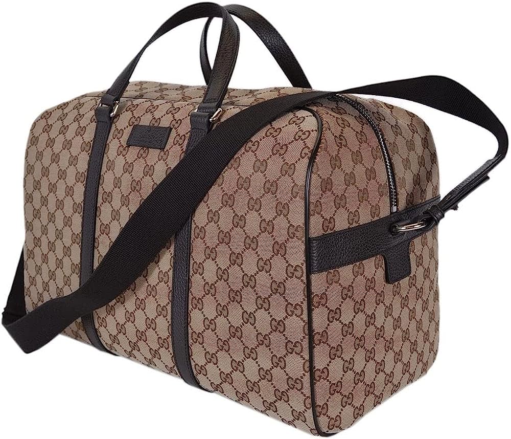 A favorite Gucci travel piece this large beige and brown canvas Gucci GG canvas duffle bag will make your next trip a breeze. This roomy luggage piece has room for clothes, shoes, and toiletries. Model 610105