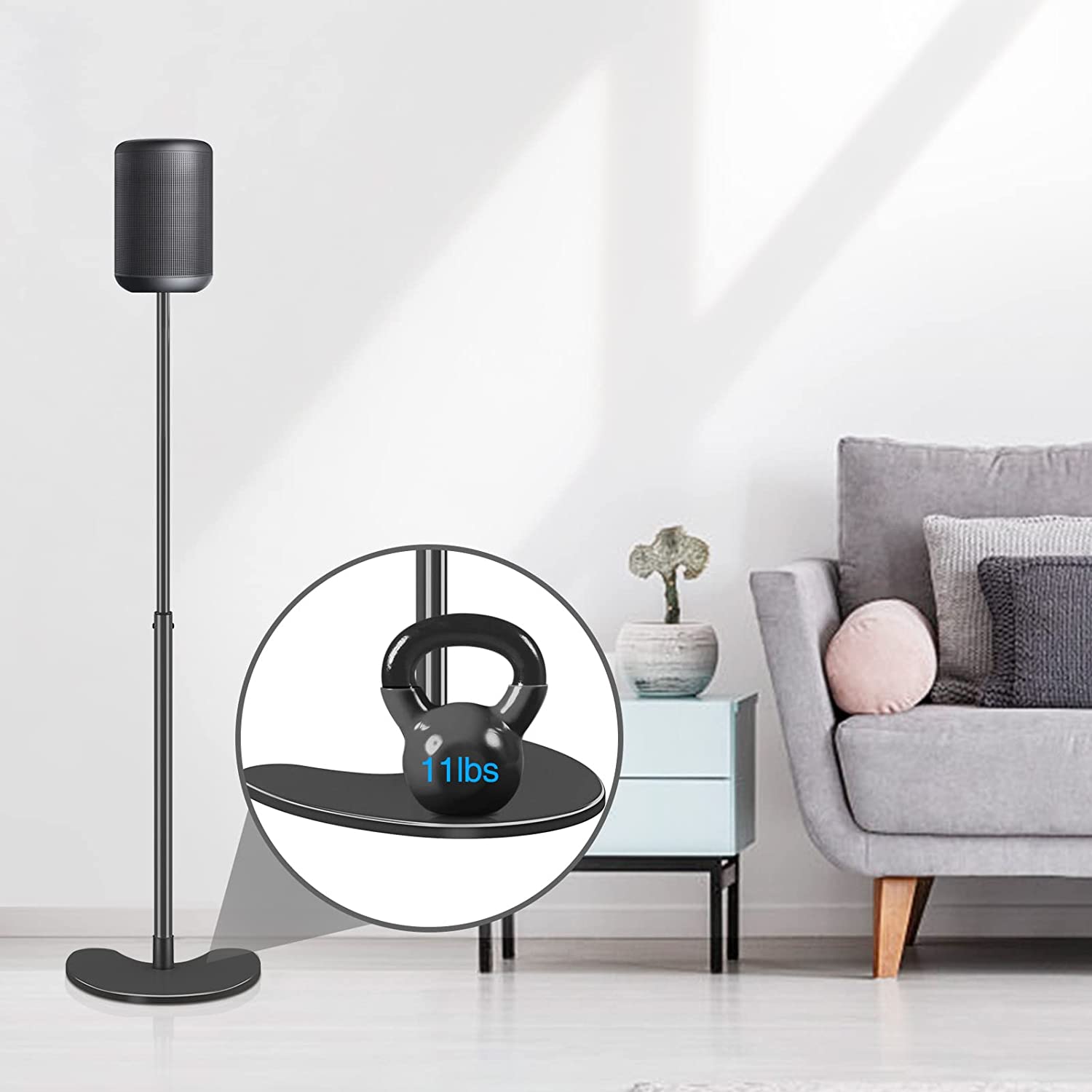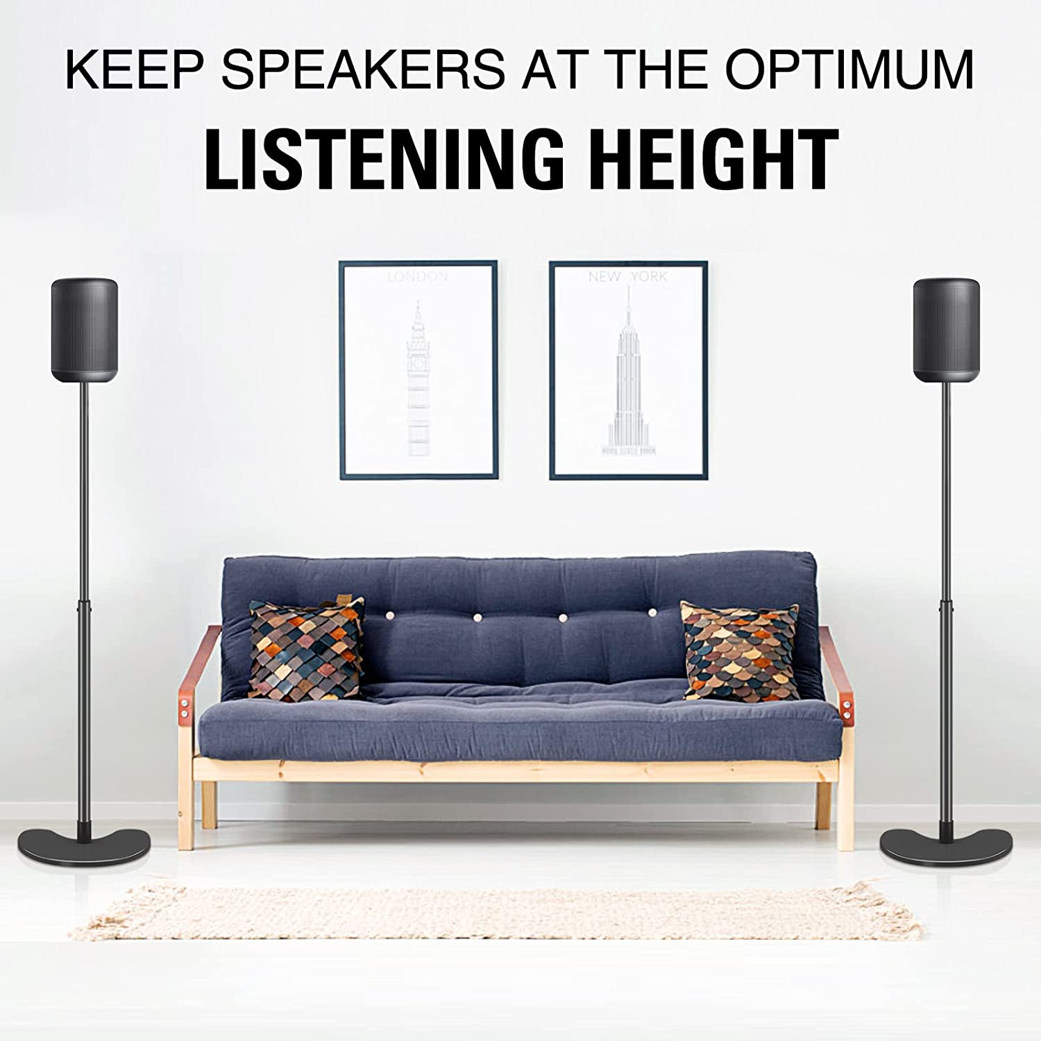 Stability & Safety - Speaker stands Cast iron for durability and stability, Supports weight up to 11lbs/5kg per Stand with black finished steel.
