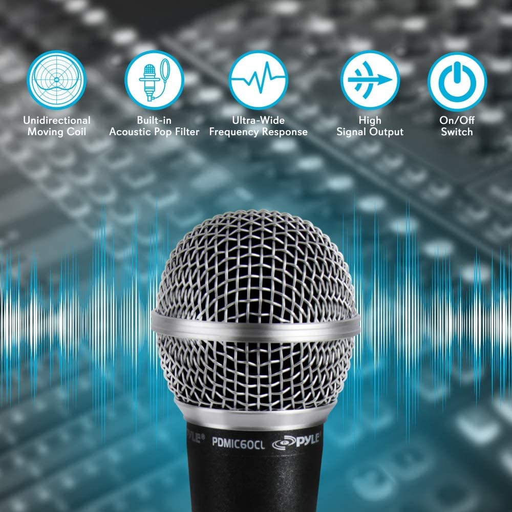 Pyle Professional Dynamic Vocal Microphone - Moving Coil Dynamic Cardioid Unidirectional Handheld Microphone with ON/OFF Switch Includes 15ft XLR Audio Cable to 1/4'' Audio Connection - PDMIC59