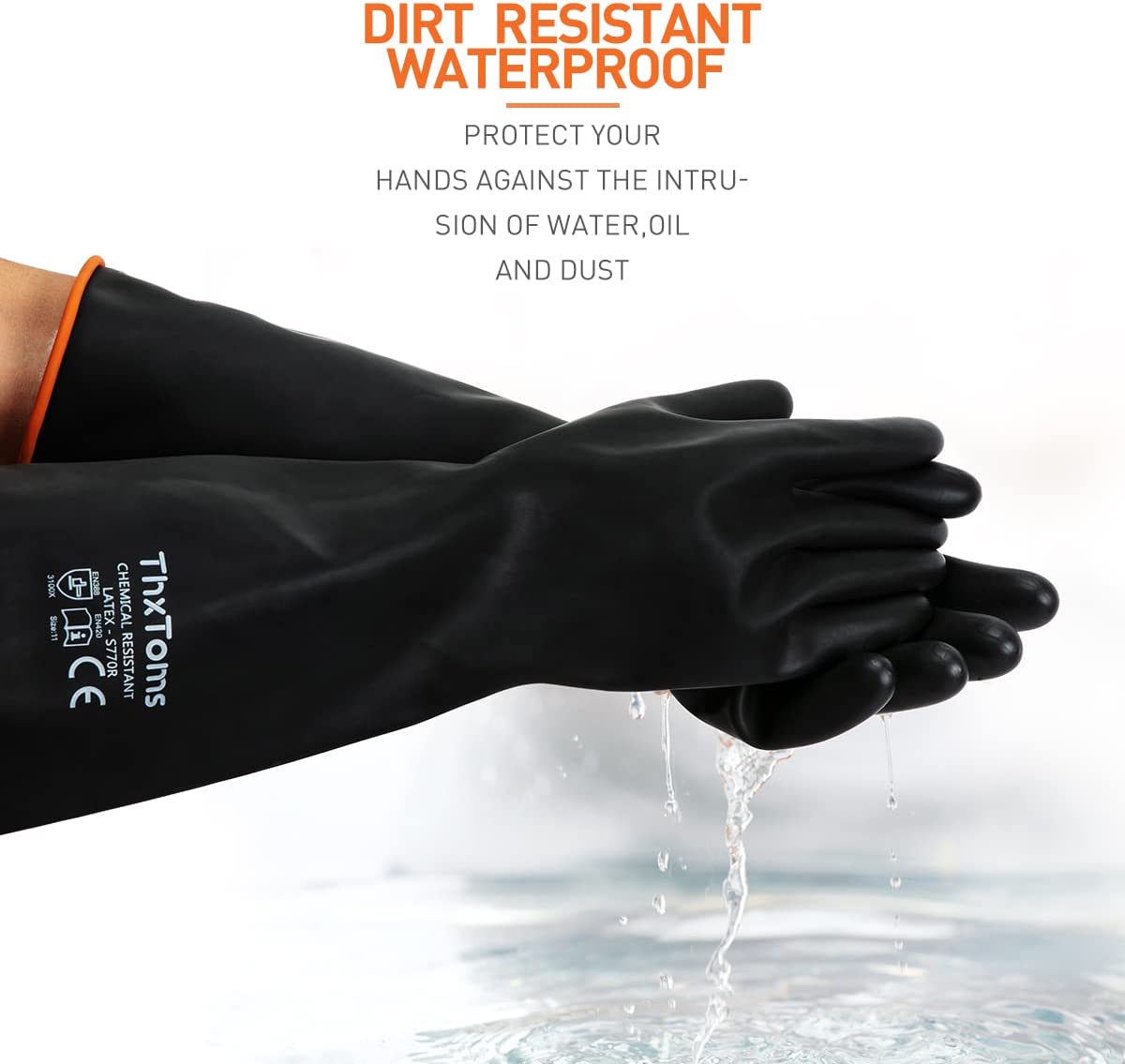 ThxToms Heavy Duty Latex Gloves, Resist Strong Acid, Alkali and Oil, 14", 1 Pair