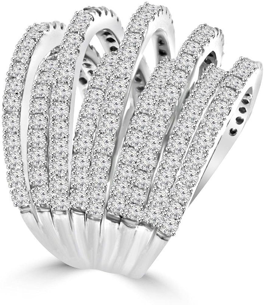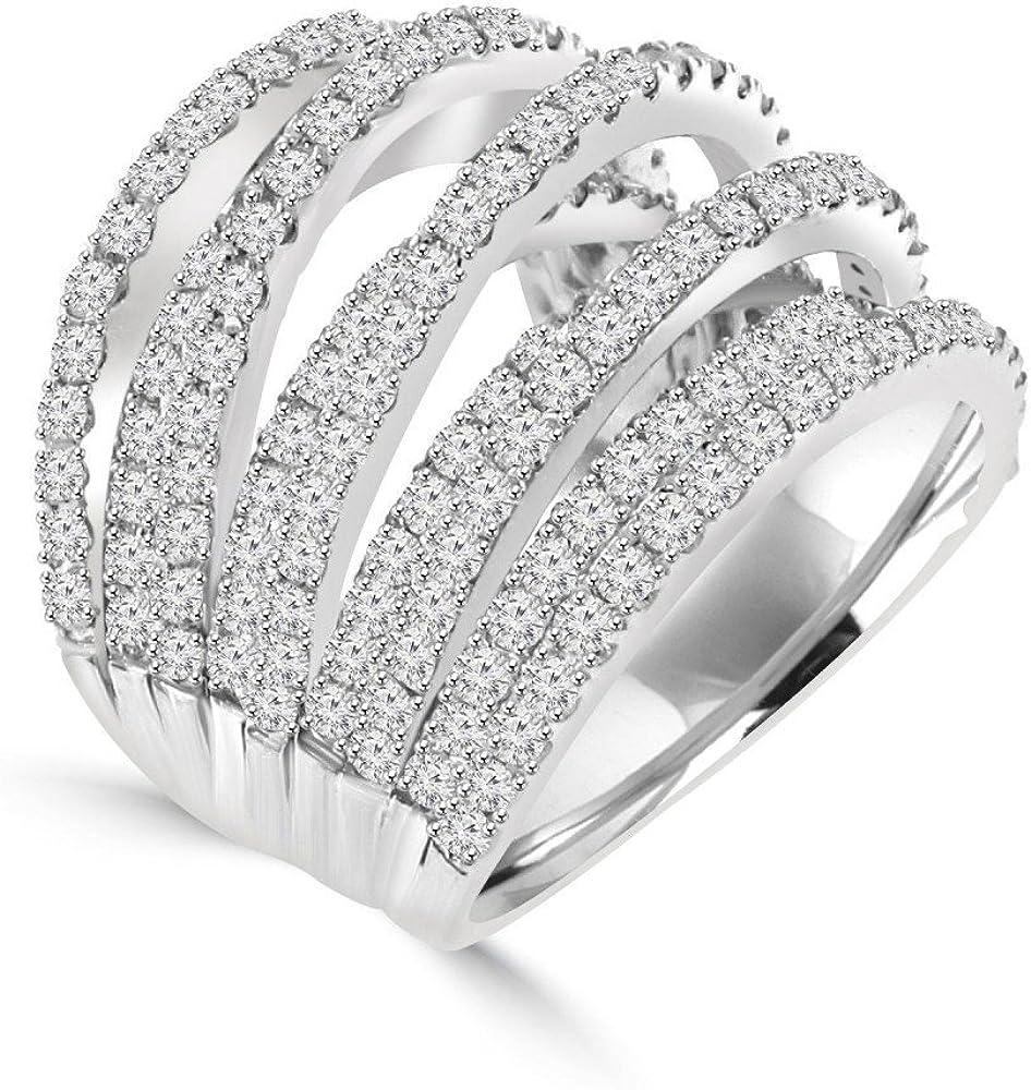 Madina Jewelry 1.16 ct Ladies Three Row Round Cut Diamond Wedding Band (Color G Clarity SI-1) in 18 kt White Gold