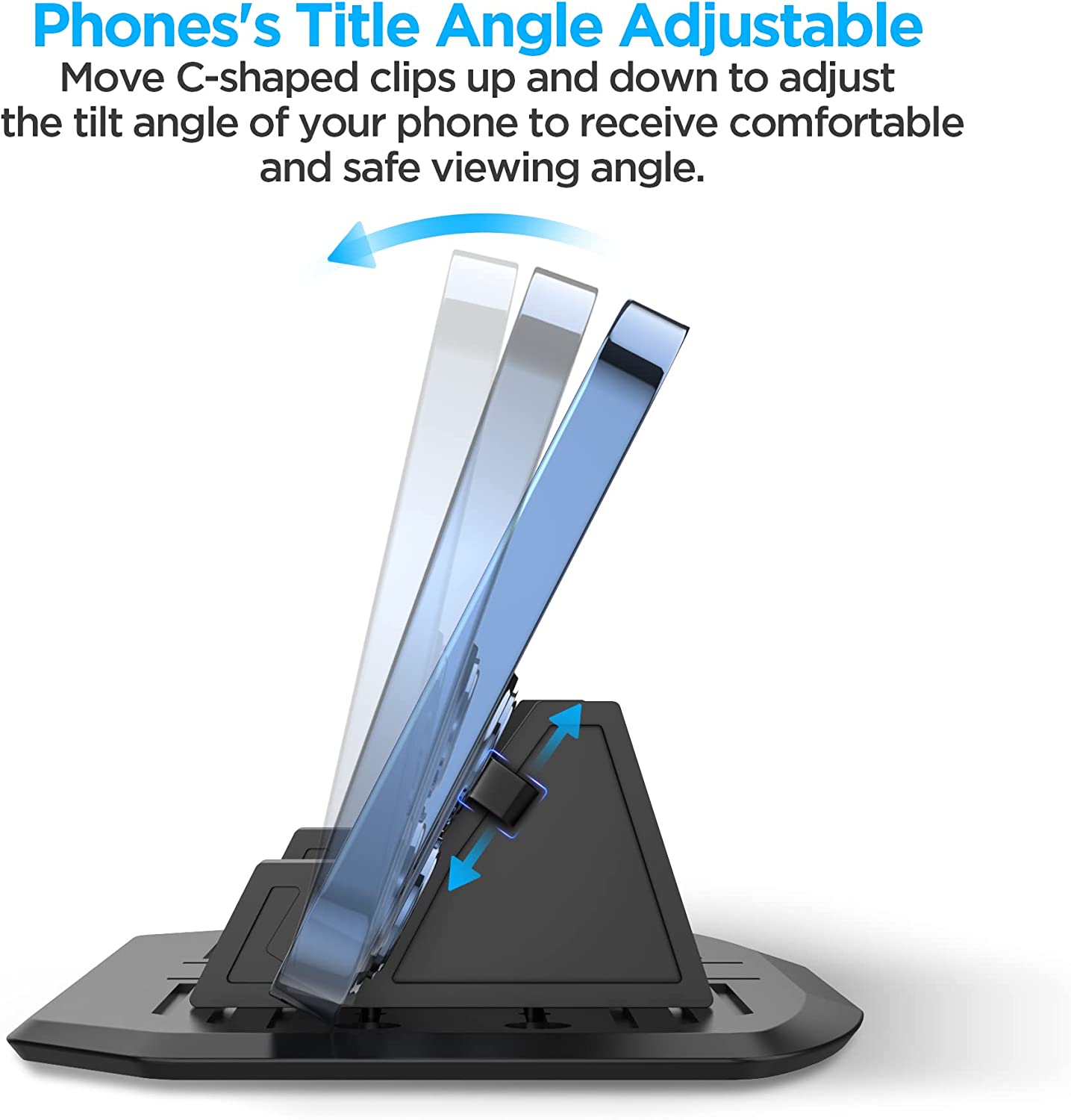 【Phones's Title Angle Adjustable】Use 2 C-shaped clips on the mounting holders, move them up and down to adjust the tilt angle of your phone.