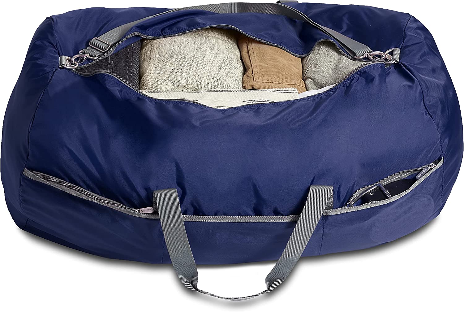 Navy Blue, large rectangular-shaped duffel bag with roomy interior (over 6,000+ cubic inches); ideal for travel or storage