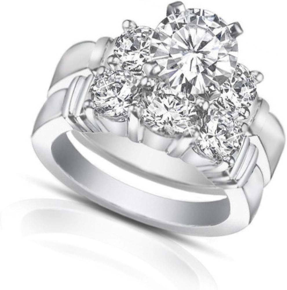 Madina Jewelry 2.00 ct Women's Round Cut Diamond Engagement Ring with Wedding Band Set in 14 kt White Gold