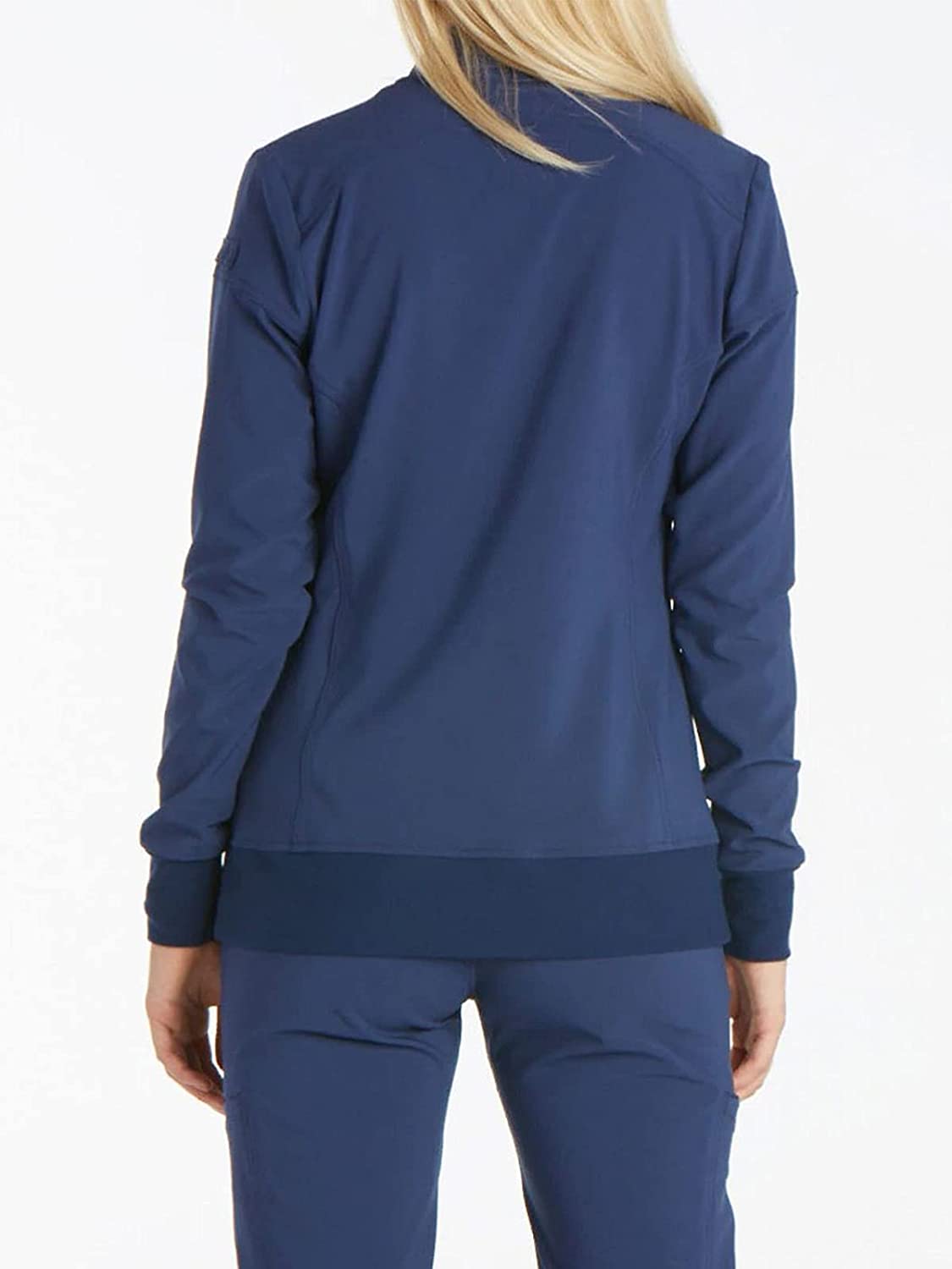 • SPORTY LOOK - Work jackets for women get a style upgrade thanks to the stretch fabric, comfy knit panels, and design details in style CK303. This RN scrub jacket includes a zip front with a zipper garage to protect your neck. There are angled front yoke seams and a curved back yoke seam. Front and back princess seams pair well with upper sleeve seams. Iflex Cherokee scrubs for women have the style and comfort you need.