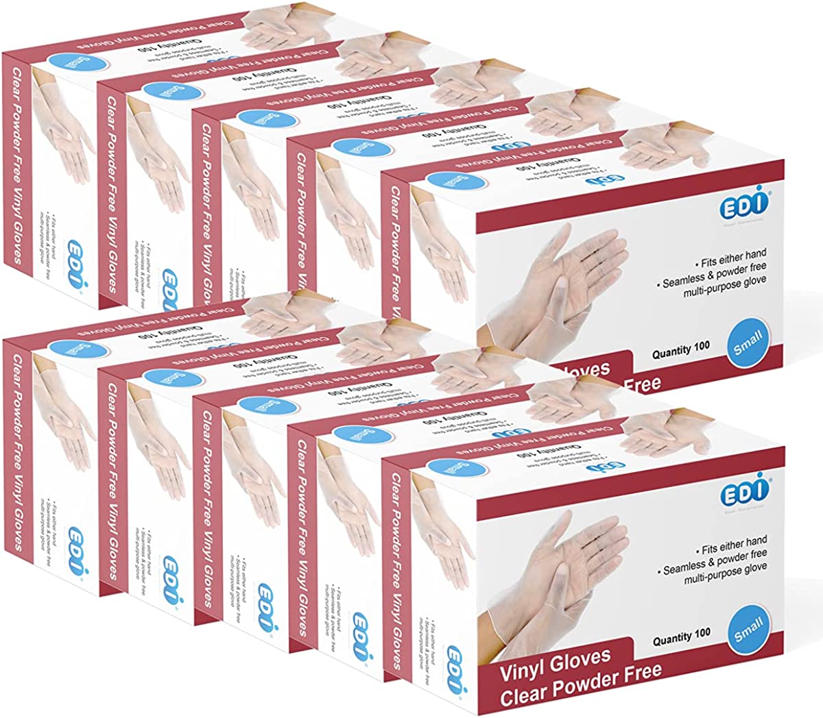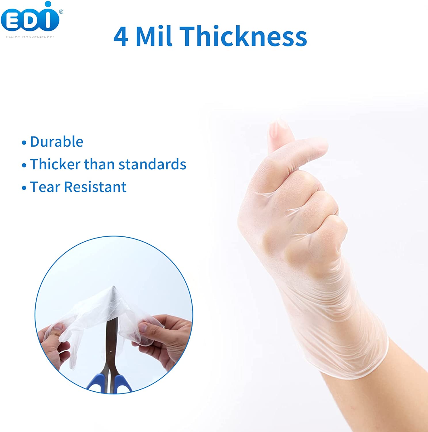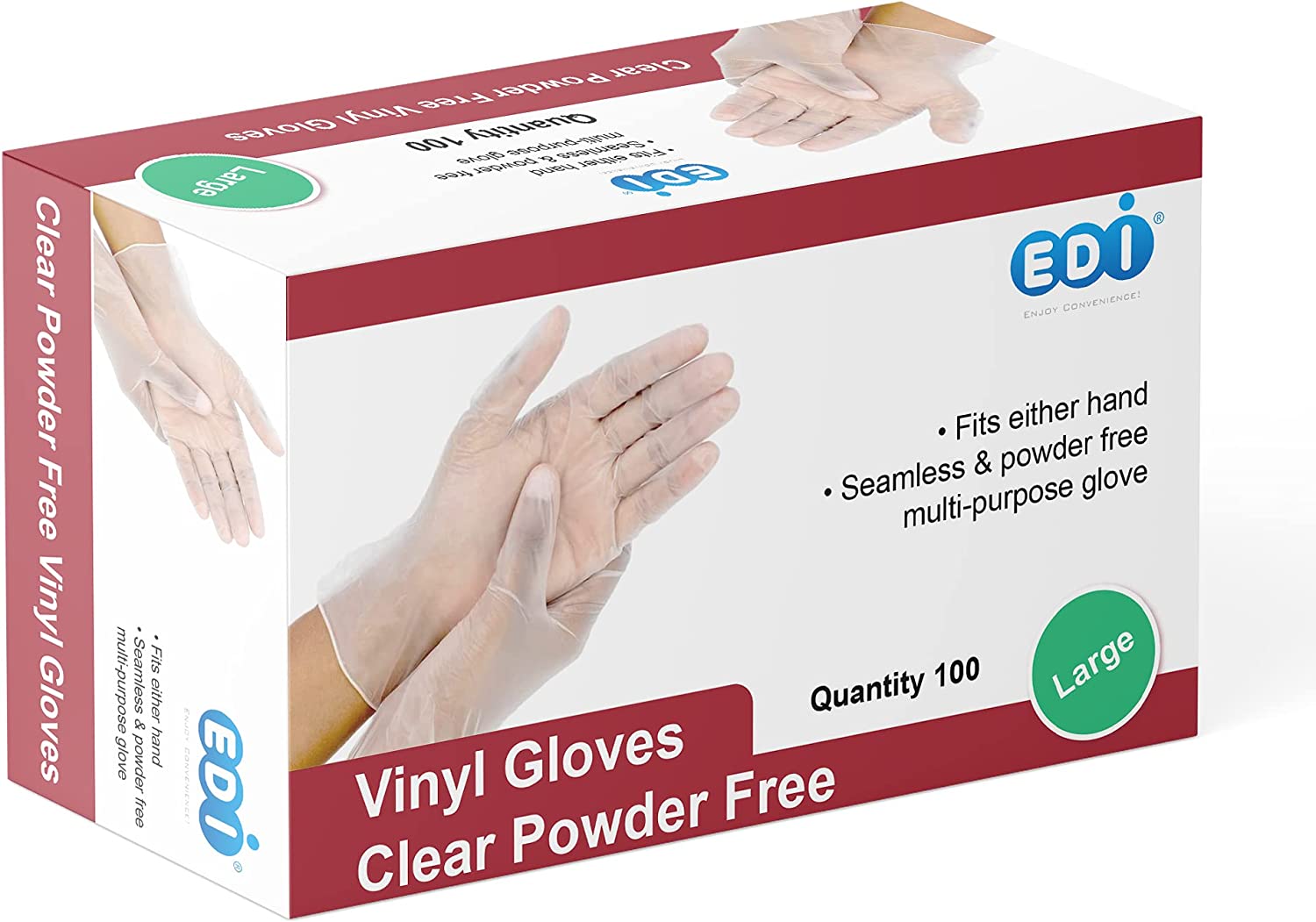 EDI Disposable Vinyl Gloves (Clear) - Powder-Free, Latex-Free