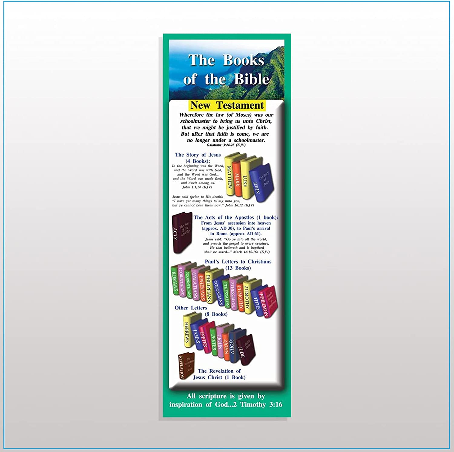 Learn the books of the Bible with our handy study guide! Learning and memorizing the books of the bible is very important for Bible study, but it can feel like a daunting task! If you need a helping hand and are looking for an easy approach to navigating the Old Testament and New Testament without any difficulty, then our Books of the Bible Bookmarks are the ideal solution. Our Bible study cards are presented in an easy-to-read format that organizes the books of the Bible by Old Testament and New Testament, and each card is double-sided and printed in full color. Great for new believers and seasoned spiritual warriors alike, our Bible study cards will help make your daily devotionals a little bit easier by showing you exactly where each book is located. Our Books of the Bible bookmarks are available in English and Spanish. Take them with you anywhere Our scripture devotional cards are compact enough to carry with you in your pocket, can be used as a bookmark, and are a great reminder to read your Bible on a daily basis. They give you the needed structure that you need so that you can rise to the challenge of studying the living Word from the beginning to the end without getting overwhelmed. Each set includes 25 individual Bible study cards that measure approximately 8.25 x 2.75 inches each. Makes a great gift for your spiritual or religious friends, family, and coworkers! Our customers use these in many ways including as handouts for morning prayer meetings, sharing of faith, encouraging Bible verse memorization, children's ministry, discipleship group, as a handy bookmark, or a gift for Sunday school, vacation Bible school, Bible classes, group study, and more. They can even be used as stocking stuffers!
