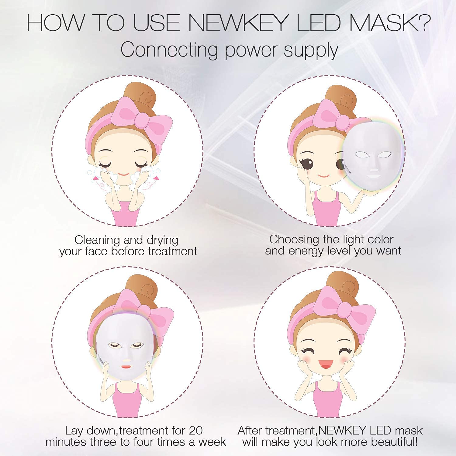 Whether you or someone you know is struggling with acne or wrinkle etc skin concerns,let NEWKEY led therapy mask lights the way to a clearer and healthier complexion.We love customer's creativity - What results you’ve seen after use. You are the customer we have been looking for - let us see your true beauty. Backed by one-year warranty, 90-day hassle-free return policy and 24-hour customer support.We always stand behind our products and service!