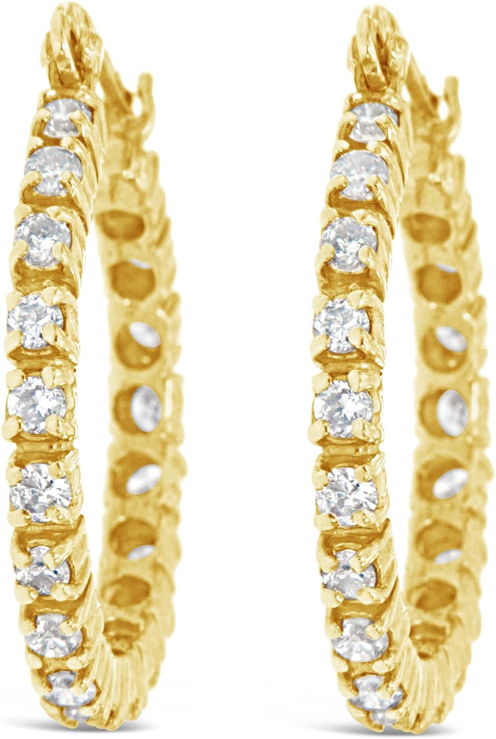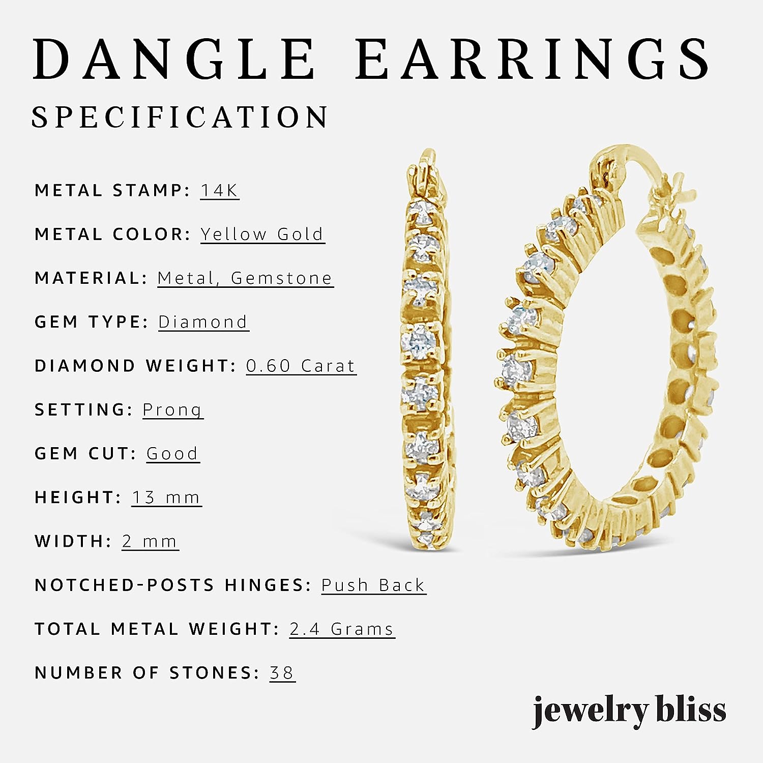 Jewelry Bliss 14k Yellow Gold Hoop Earrings With Diamond. Real Diamond Jewelry, Diamond Hoop Earrings for Women, April Birthstone (Dia: 3/4 Carats) Anniversary, Valentine's, Mother's day, Wedding