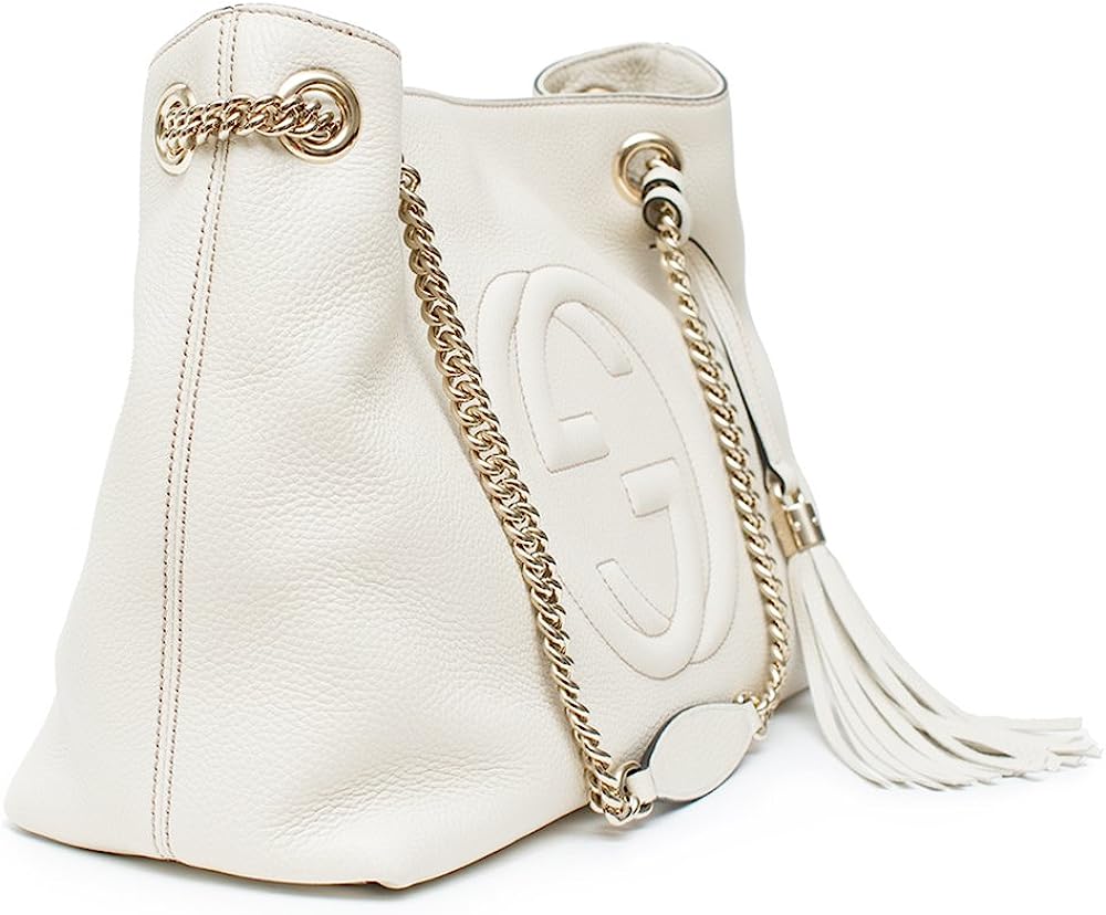 Gucci Soho Ivoire Ivory Gold Double Chain Soft Hobo Leather Shoulder Bag Italy Authentic New