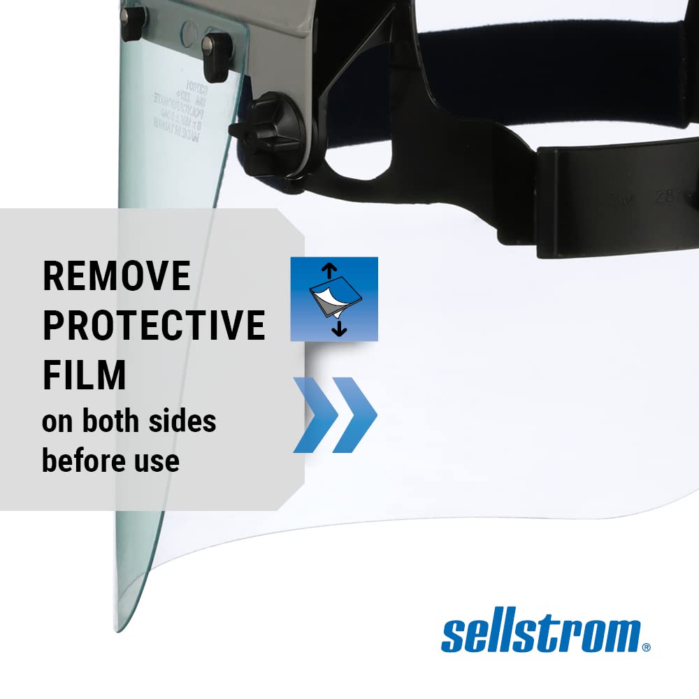 FACE SHIELD FEATURES: Includes a grey abs crown, uncoated clear polycarbonate window and ratchet headgear and pin closure. Abs injection molded crowns have universal bracket pin pattern for use with any window mount