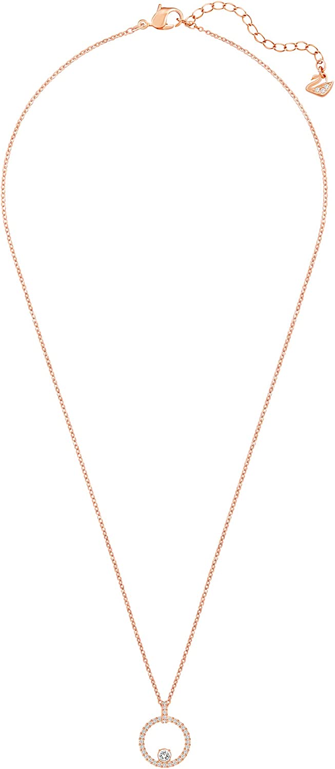 Items delivered: 1 x Swarovski Creativity Collection necklace, 14 7/8 inch chain, 5/8 x 3/4 inch rose-gold tone plated, clear crystal circular design pendant, with Swarovski necklace box