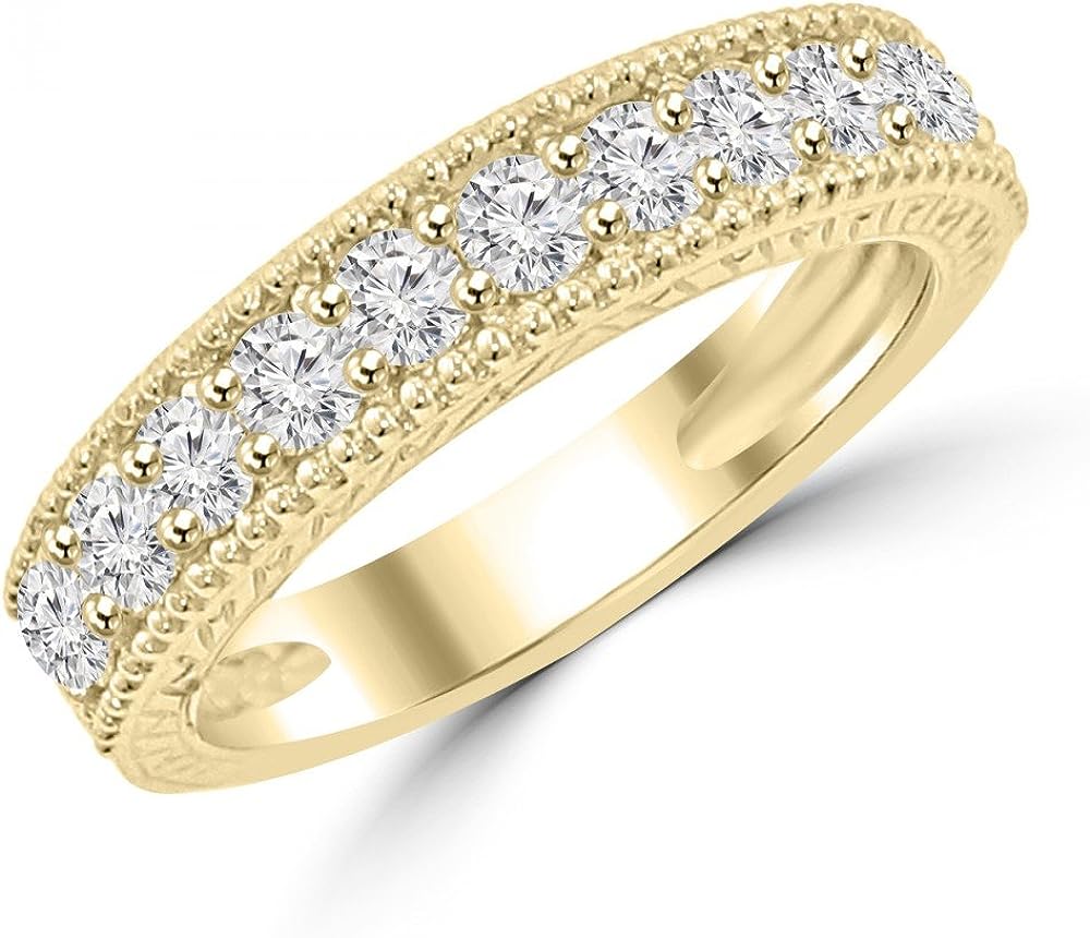 Madina Jewelry 1.10 ct Ladies Round Cut Diamond Wedding Band Ring with Millgrain Edge in 18 kt Yellow Gold