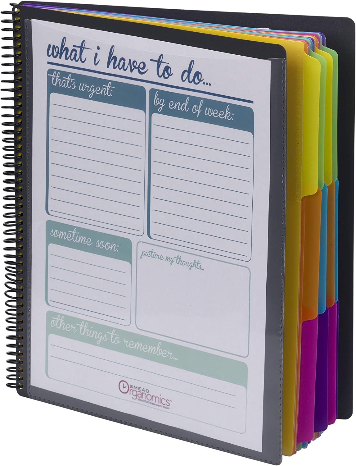 Organize important project documents and take them on the go! Smead’s Poly Project Organizer keeps documents safe, organized and within reach. Includes one letter size (10” W x 12” H) poly project organizer with 24 pockets. Twelve colorful dividers in yellow, neon orange, neon green, blue, neon pink, and fuschia help you sort project components. Slash pockets hold your papers in place in sequential and color-coded order. This spiral bound notebook-style organizer lays flat for ease of use. Slip a cover sheet into the clear front pocket to customize your organizer, and keep essentials such as pens and notecards in the zippered pocket inside the back cover. Use this project organizer for important documents, payables and educational materials. These acid-free and PVC-free project organizers are suitable for home, office and classroom. Excellent for desktop filing and on-the-go use. Easy to wipe clean. Make work flow easier by managing your projects with this useful tool. • A Rich Heritage of Innovation and Quality. A world-leading provider of solutions for efficient document management, Smead is a woman-owned company well-known for its high quality, environmentally responsible products and innovative organizational systems. For more than a century, Smead has been committed to one purpose: Keeping You Organized!
