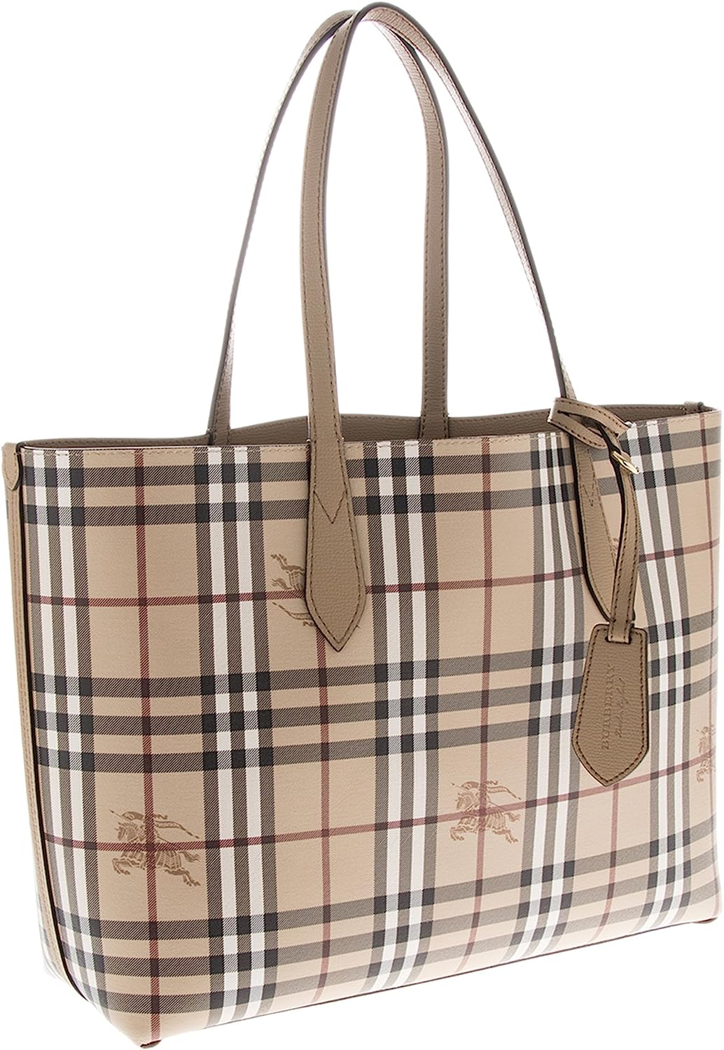 Burberry Women's Medium Reversible Handbag in Haymarket Check Camel