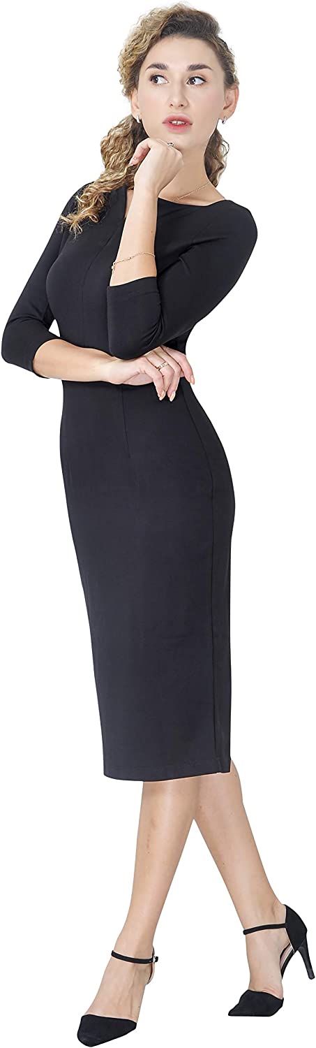 Made by Marycrafts, this dress, undoubtedly owns elegant and modest features to help you inner lights shine in every occasion FEATURES: - SQUARE SLIT NECK - 3/4 SLEEVES - PENCIL SILHOUETTE - COPPER BACK ZIPPER - MIDI LENGTH (43-45")