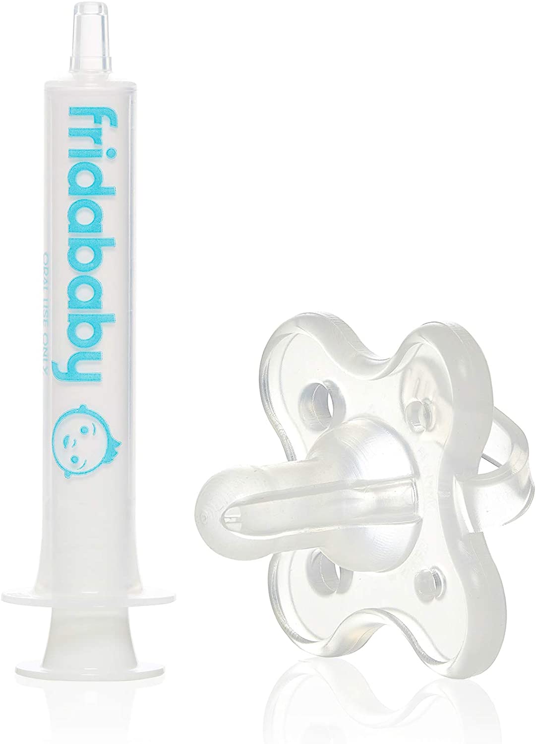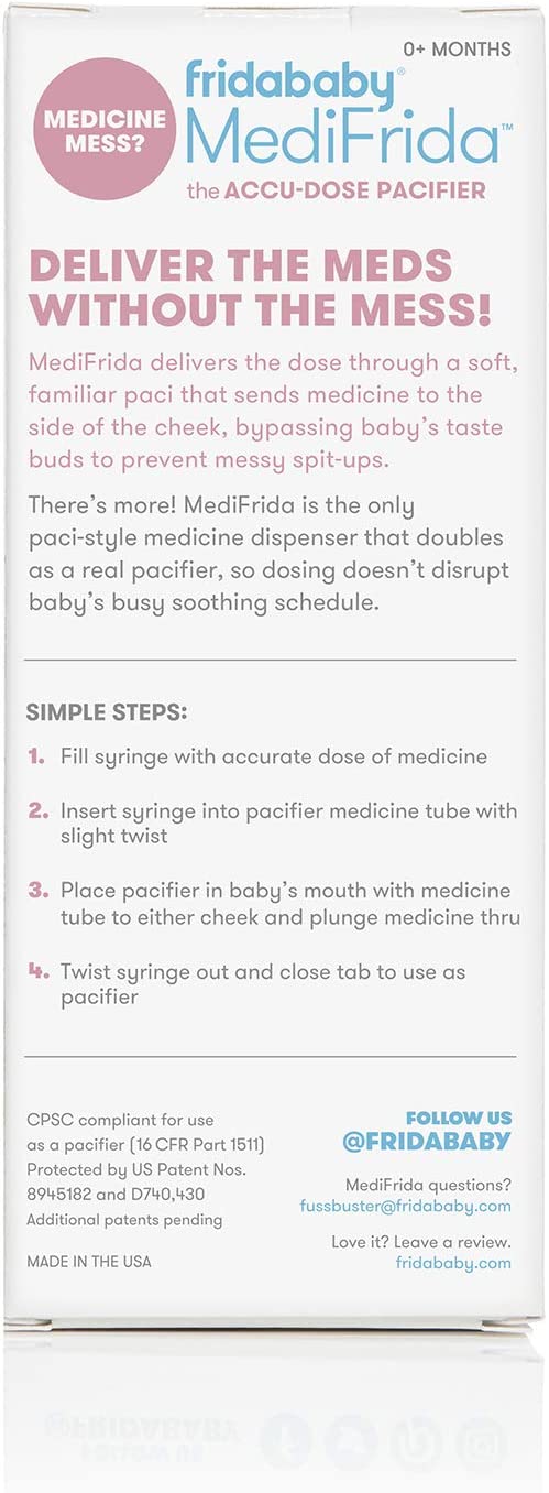 SYRINGE: Included syringe features markings for common medicine doses, but any standard syringe can be used with paci.DOUBLE DUTY: Close tab on paci to double as a real pacifier after dosing.BPA FREE: Both pacifier and syringe are BPA free and dishwasher safe making it easy to clean and safe to use