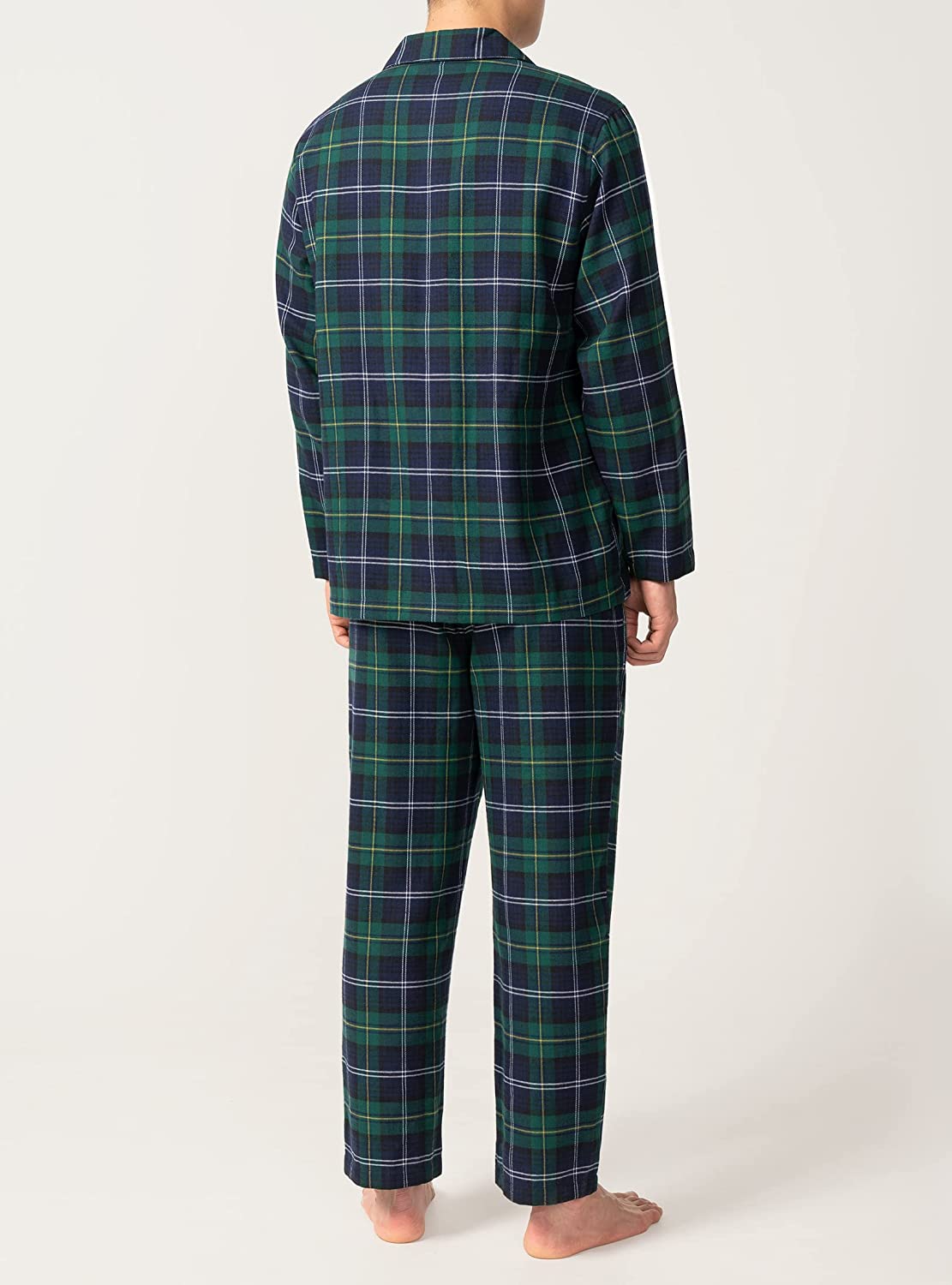 Button-down Collar: Long sleeve pajamas for men with pocket for a classic look