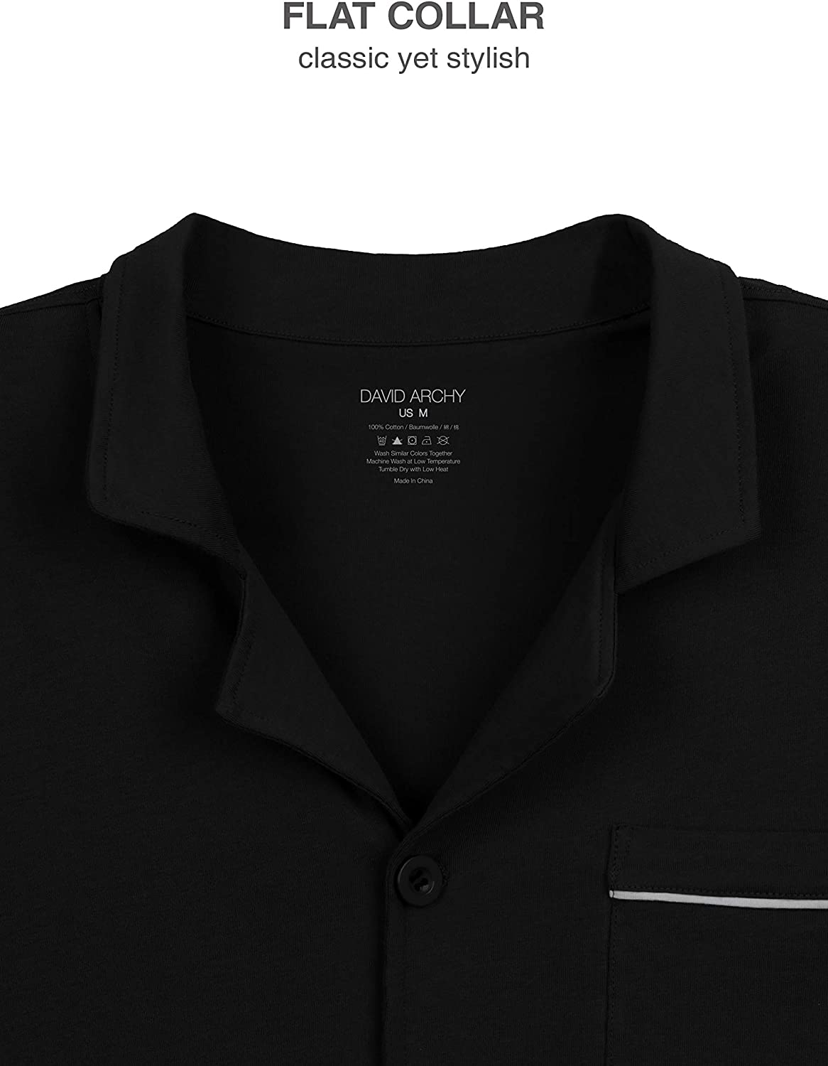 DAVID ARCHY Men's Cotton Sleepwear Button-Down Pajamas Set