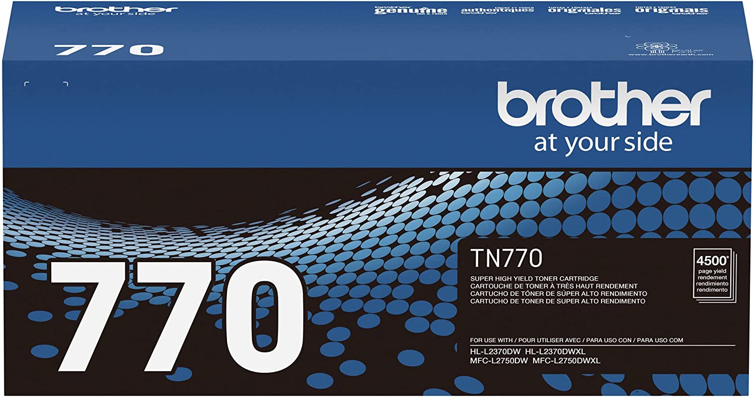 Brother Genuine TN770 monochrome laser toner cartridge delivers consistent, professional mono laser print quality with up to 4,500-page yield. Brother Genuine toner is intelligently engineered to work seamlessly with your Brother Printer to reliably produce crisp prints that withstand the test of time. Only Brother Genuine toner will provide print results that you can be consistently proud of. Using Brother Genuine supplies delivers peak performance and high-quality prints. Brother offers an environmentally responsible way for customers to recycle Brother Genuine cartridges at end of life.For use with: HLL2370DW, HLL2370DW XL, MFCL2750DW, MFCL2750DW XL.
