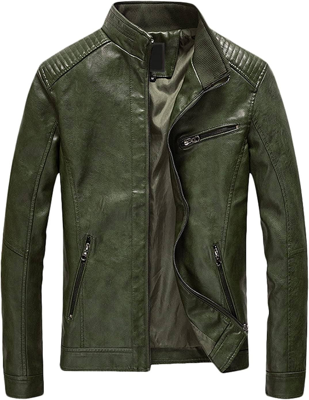 Youhan Men's Casual Zip Up Slim Bomber Faux Leather Jacket