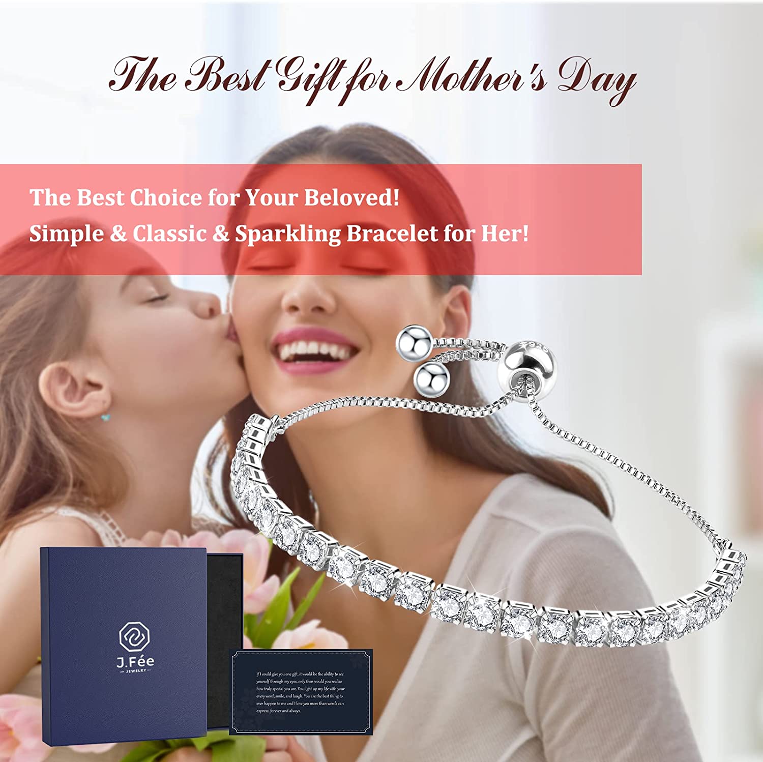 J.Fée Silver Bracelet,S925 Tennis Bracelet with Sparkling 5A Cubic Zirconia Adjustable Bracelet for Women Silver Bracelets for Women Gifts for Women Girls,Gifts for Her