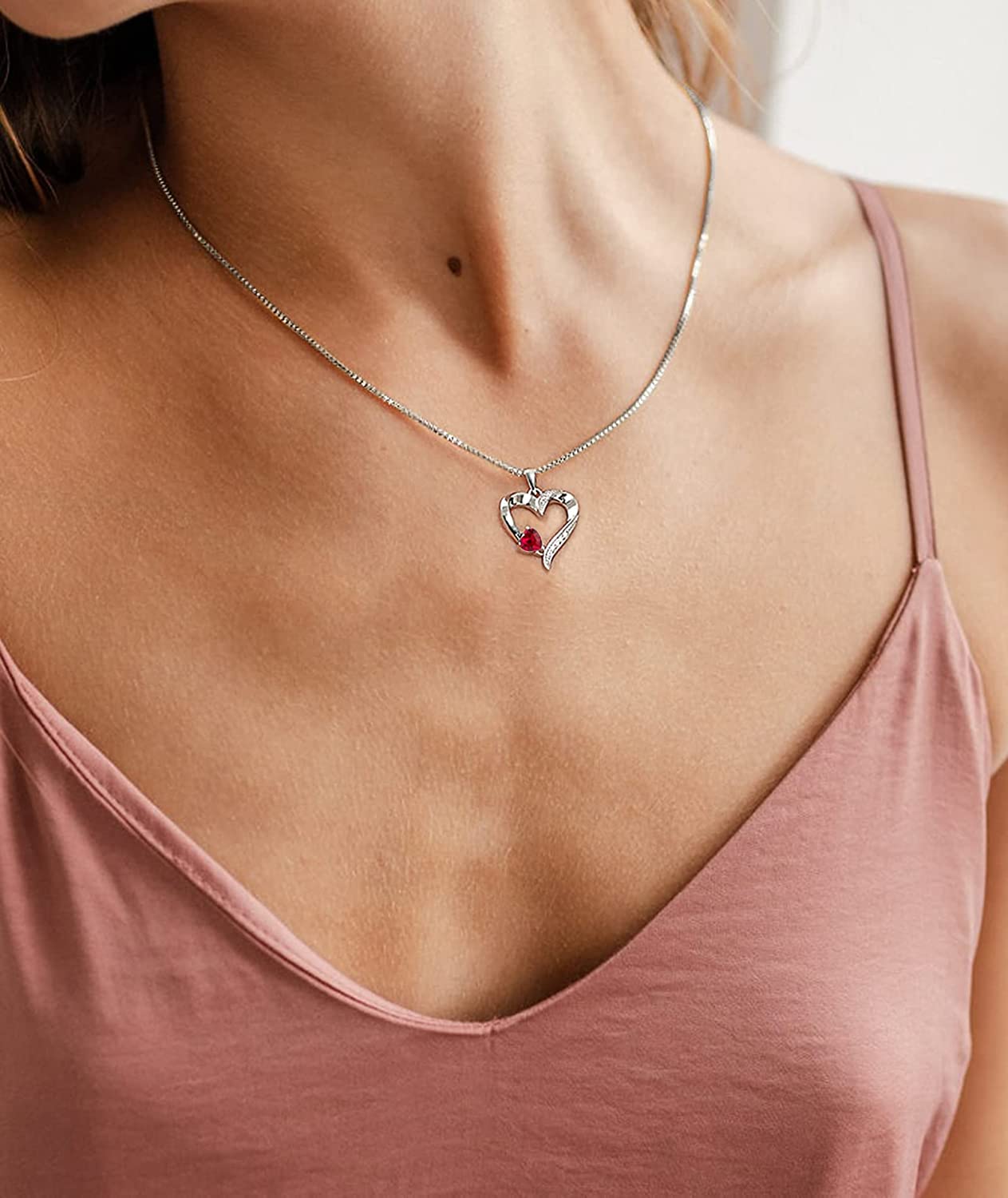 ❤️ YL DESIGN - This birthstones heart necklace with "red heart" represent “Passionate, Lively”