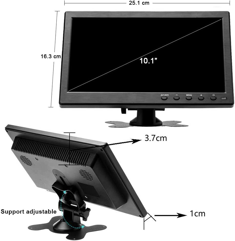 ✔️【Portable & New Design】10.1 inch monitor is very portable and easy to use. The small monitor that sports a four-sided slim bezel design. Its IPS panel has a full-HD 1024*600 resolution, aspect ratio 16:9. With NTSC / PAL video color system. Brightness and Contrast can be adjust, you will get much richer colors and clear viewing angles that are near horizontal