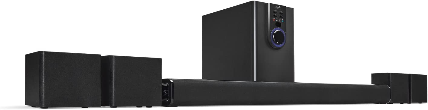 Complete your home theater experience with stunning sound from this 5. 1 channel powered speaker system. You'll hear every detail whether you connect via Bluetooth or RCA input. This home theater system features 6 surround speakers: subwoofer, front left and right, surround left and right and a 26 inch sound bar. With a wireless range of 60 feet, this system includes a remote control, 3. 5mm to RCA audio cable, 3 RCA stereo audio cables, and user's guide. Sound bar and satellite speakers are wall mountable (hardware not included). iLive products offer exciting, innovative features with a quality and affordability that you can depend on. AC power: built-in AC power cable,Soundbar Dimensions: 26 x 2.5 x 2.5,Single Speaker Dimensions: 3.54 x 2.95 x 3.54,Subwoofer Dimensions: 5.43 x 8.86 x 9.65,Cloth speaker grill,LED function indicator.