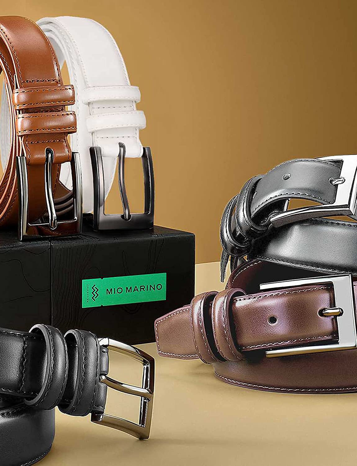Marino’s Men Genuine Leather Dress Belt with Single Prong Buckle - Charcoal - 40 (Waist: 38)