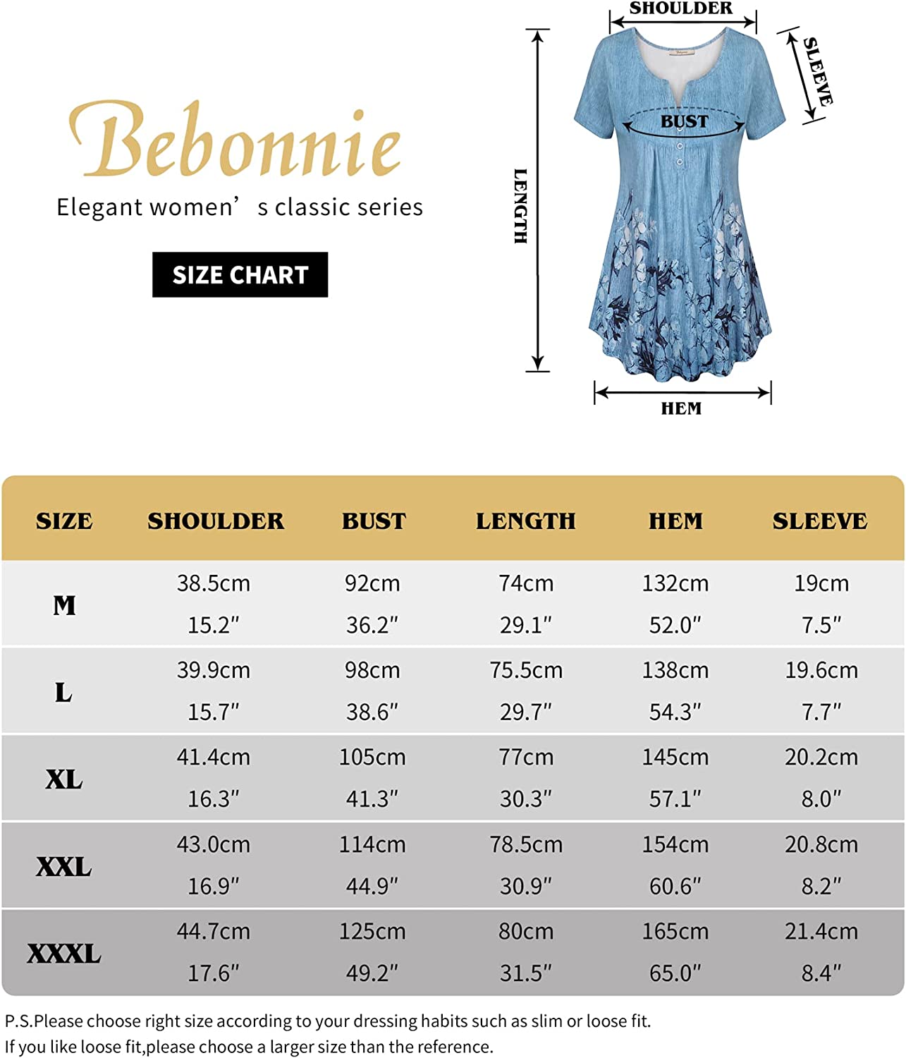 • Bust Size:M 36.2"/92CM,L 38.6"/98CM,XL 41.3/105CM,XXL 44.9/114CM,3XL 49.2/125CM
