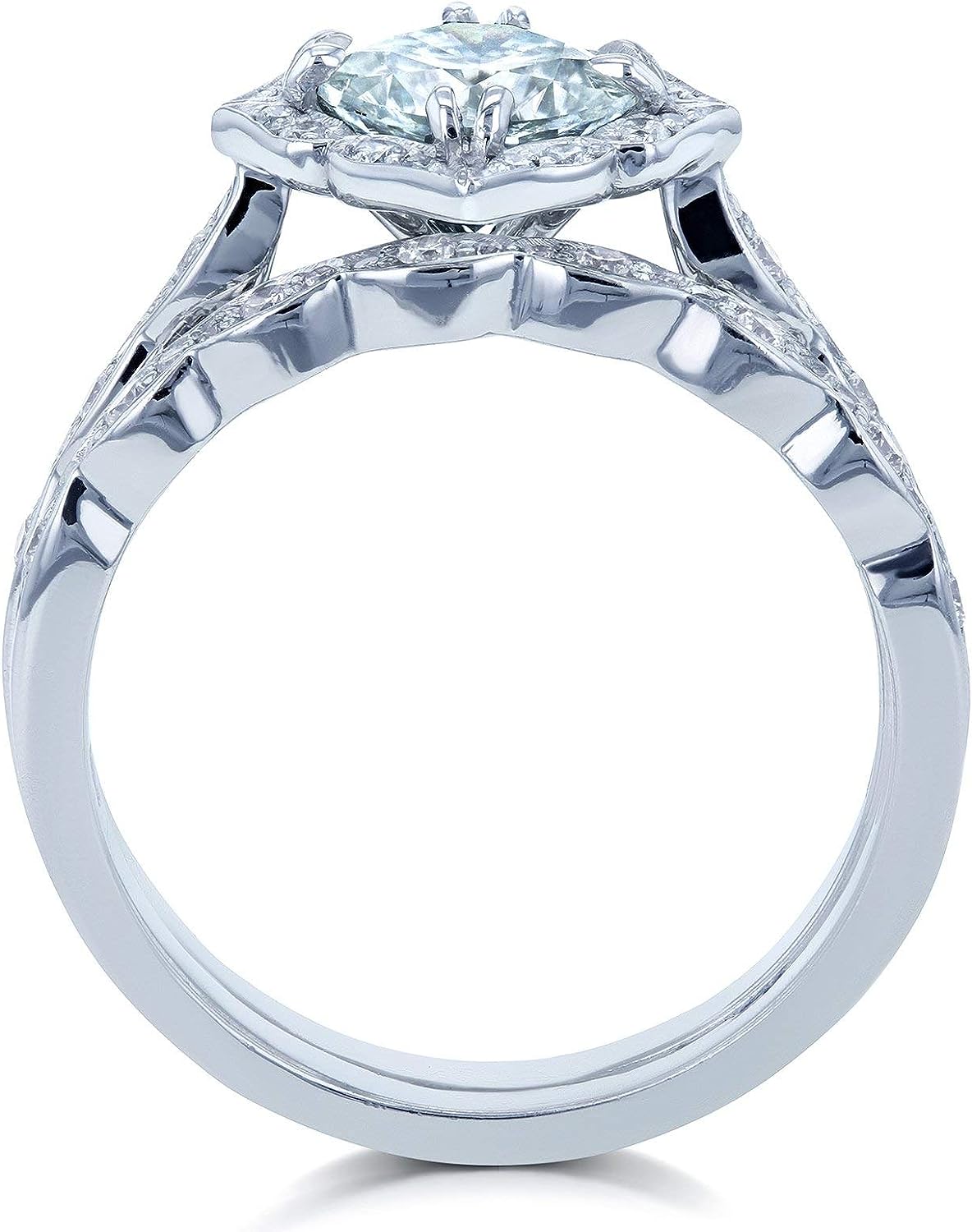 Kobelli Forever One Moissanite Vintage Style Floral Bridal Rings Set 1 1/2 CTW 14k White Gold (DEF/VS, GH/I)