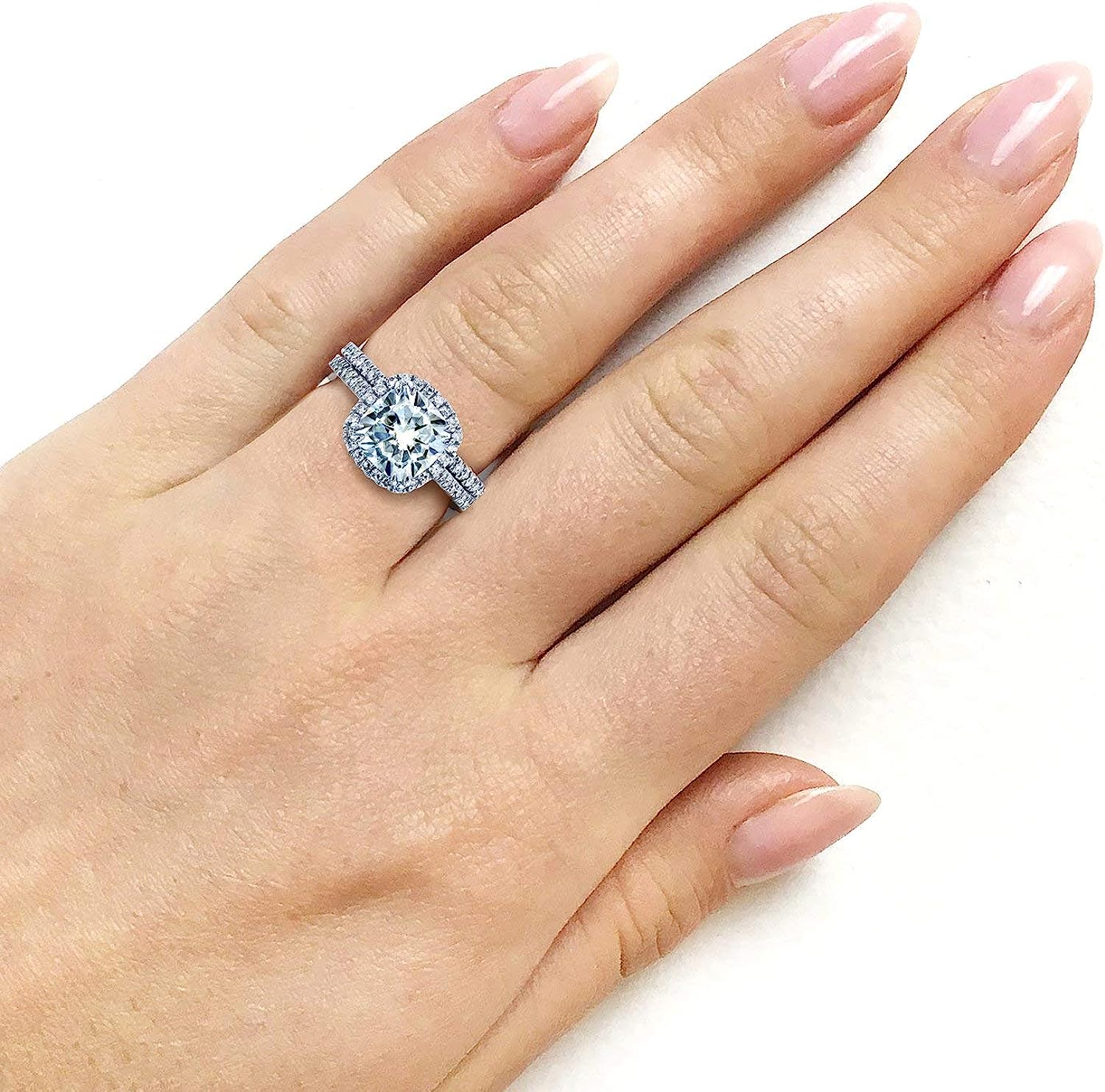 Kobelli Cushion Brilliant Moissanite Halo Bridal Wedding Rings Set 2 3/8 CTW 14k White Gold